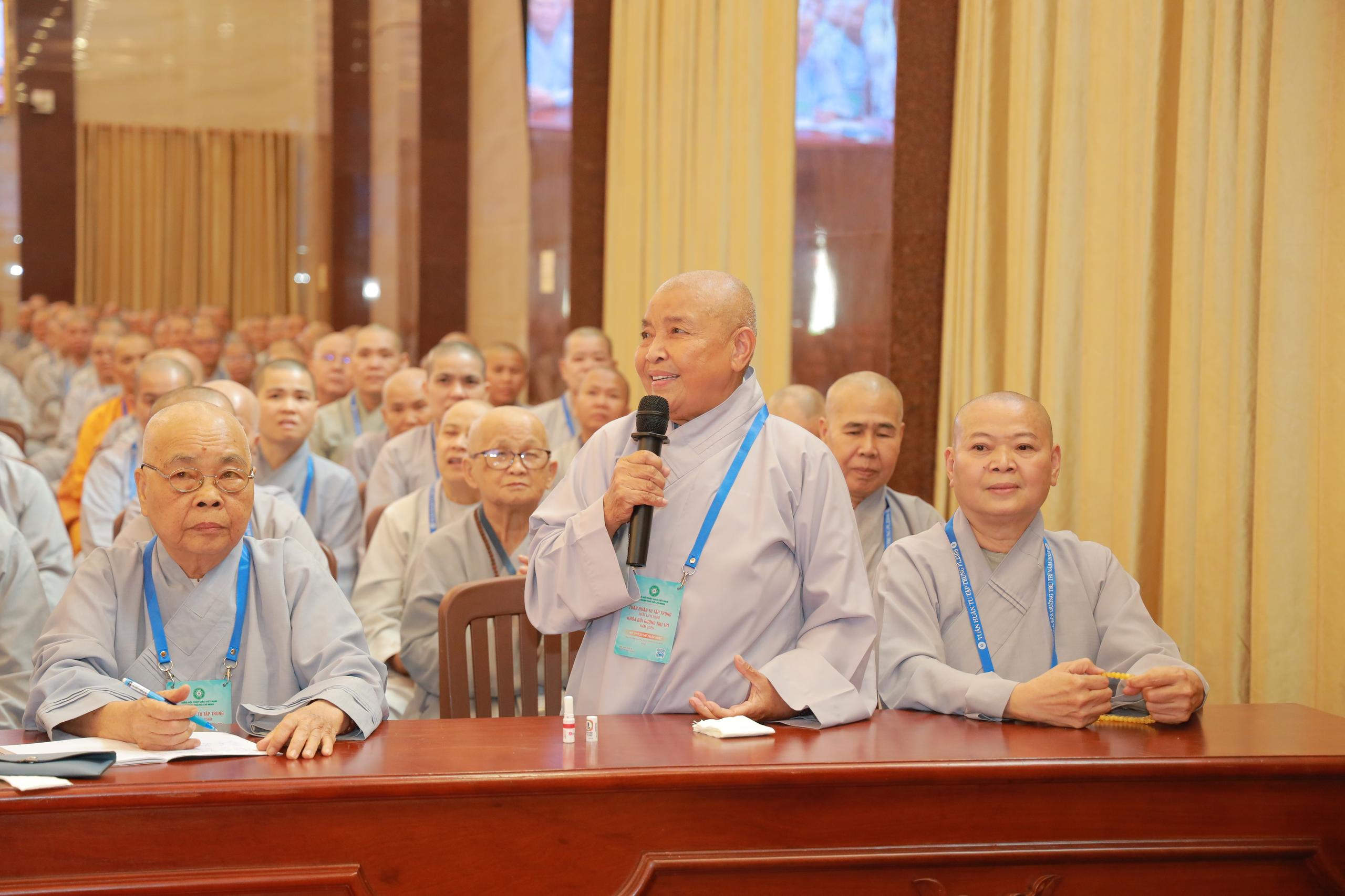 Phiên thảo luận do Hòa thượng Thích Lệ Trang – Phó Chủ tịch Hội đồng Trị sự GHPGVN, Trưởng Ban Nghi lễ Trung ương, Trưởng Ban Trị sự GHPGVN TP.HCM, Trưởng Ban Tổ chức Tuần Huân tu và Khóa bồi dưỡng trụ trì PL.2569 chủ tọa.