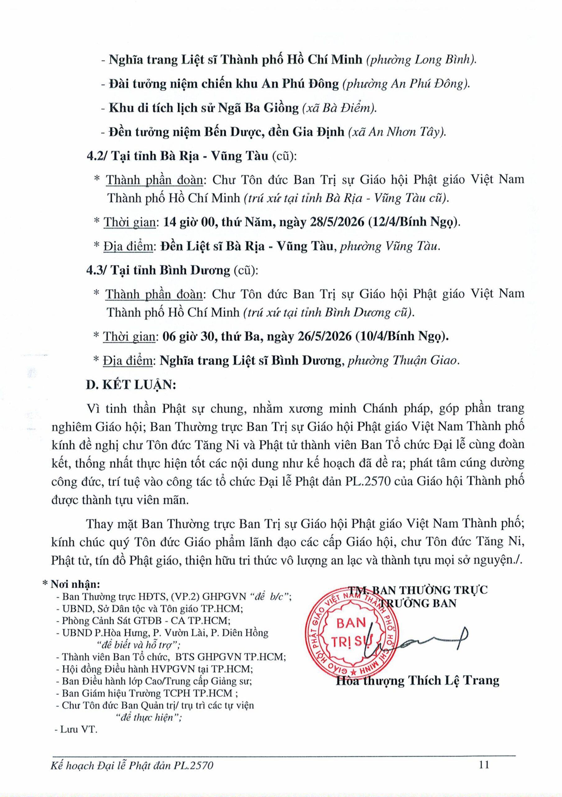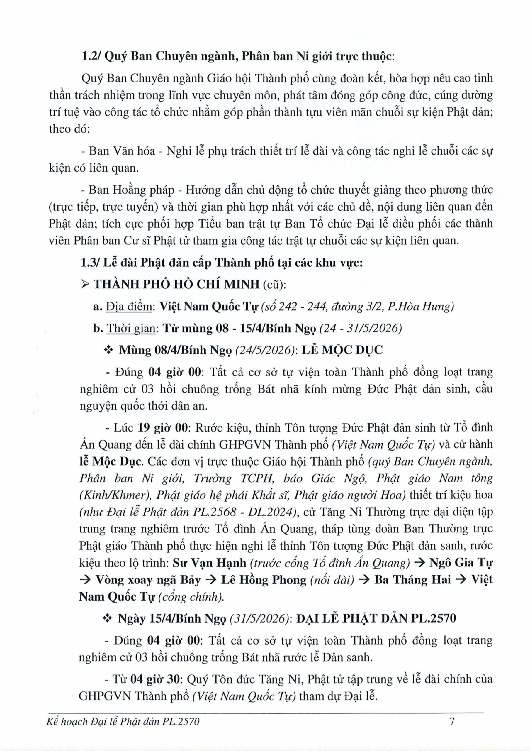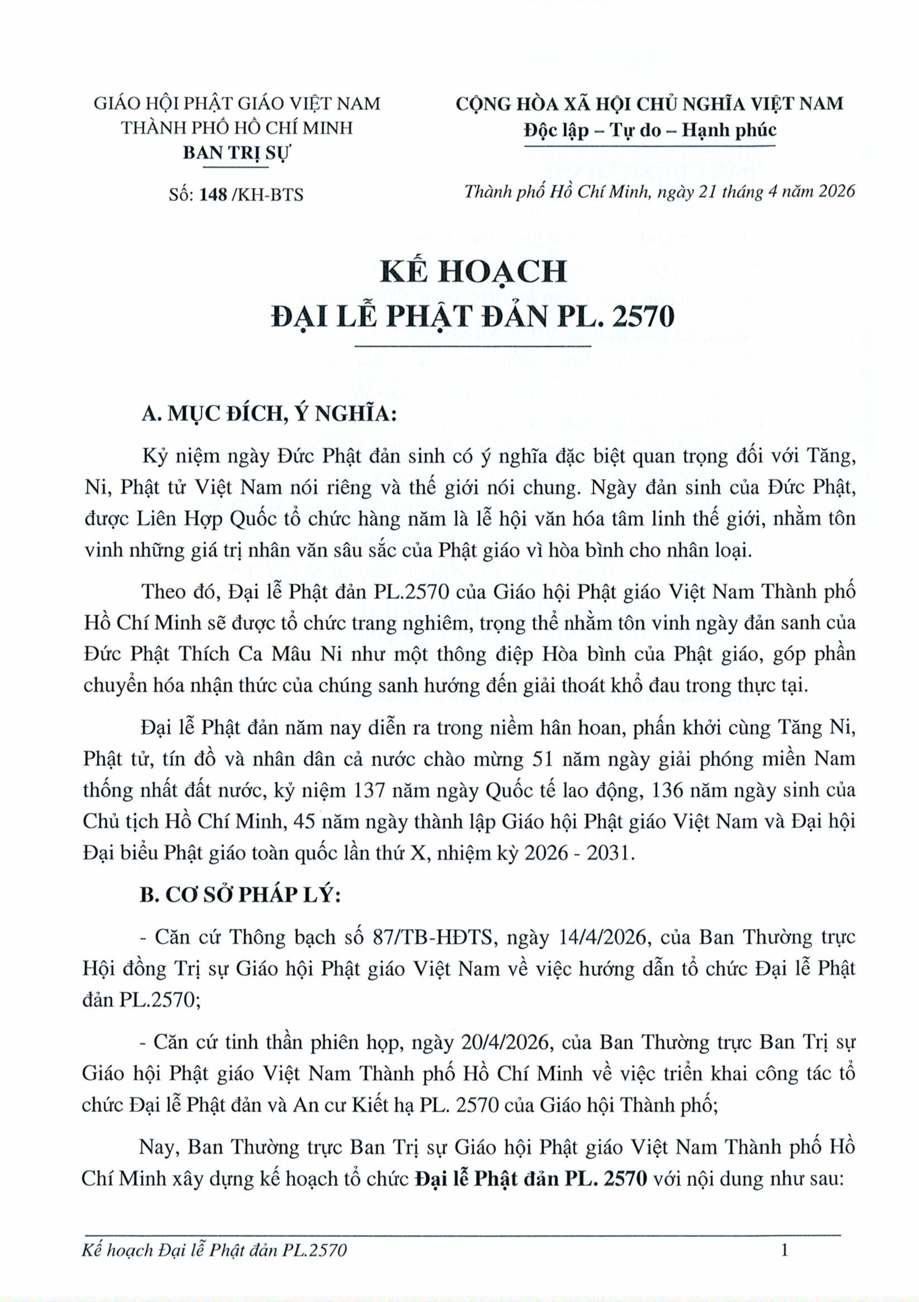 PGTPHCM – Ngày 21/04/2026, Ban Trị sự GHPGVN TP.HCM ban hành Kế hoạch số 148/KH-BTS về việc tổ chức Đại lễ Phật đản Phật lịch 2570. Đại lễ sẽ được tổ chức trọng thể tại Việt Nam Quốc Tự, đồng thời triển khai nhiều hoạt động Phật sự trên toàn địa bàn Thành phố và các khu vực liên quan.