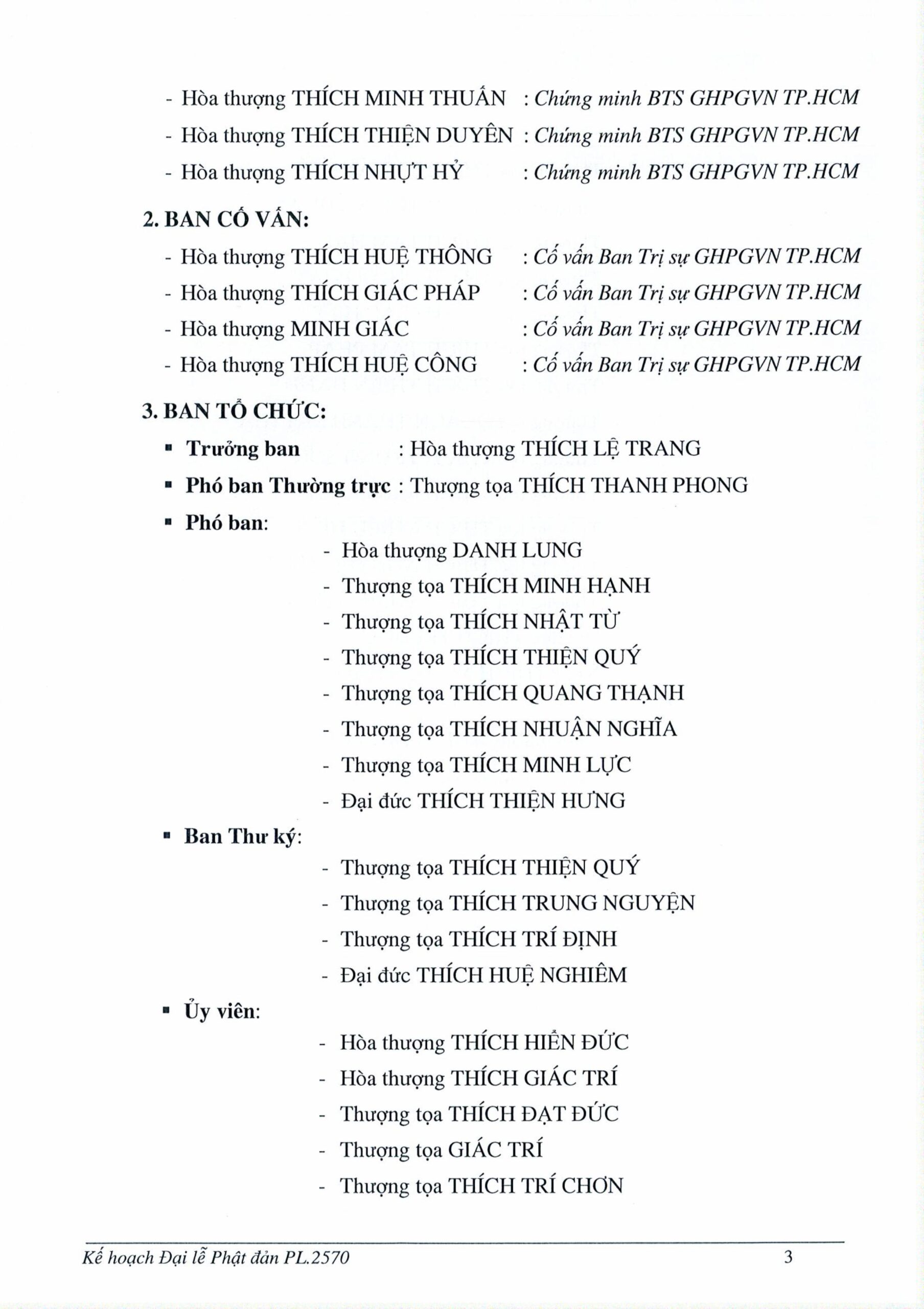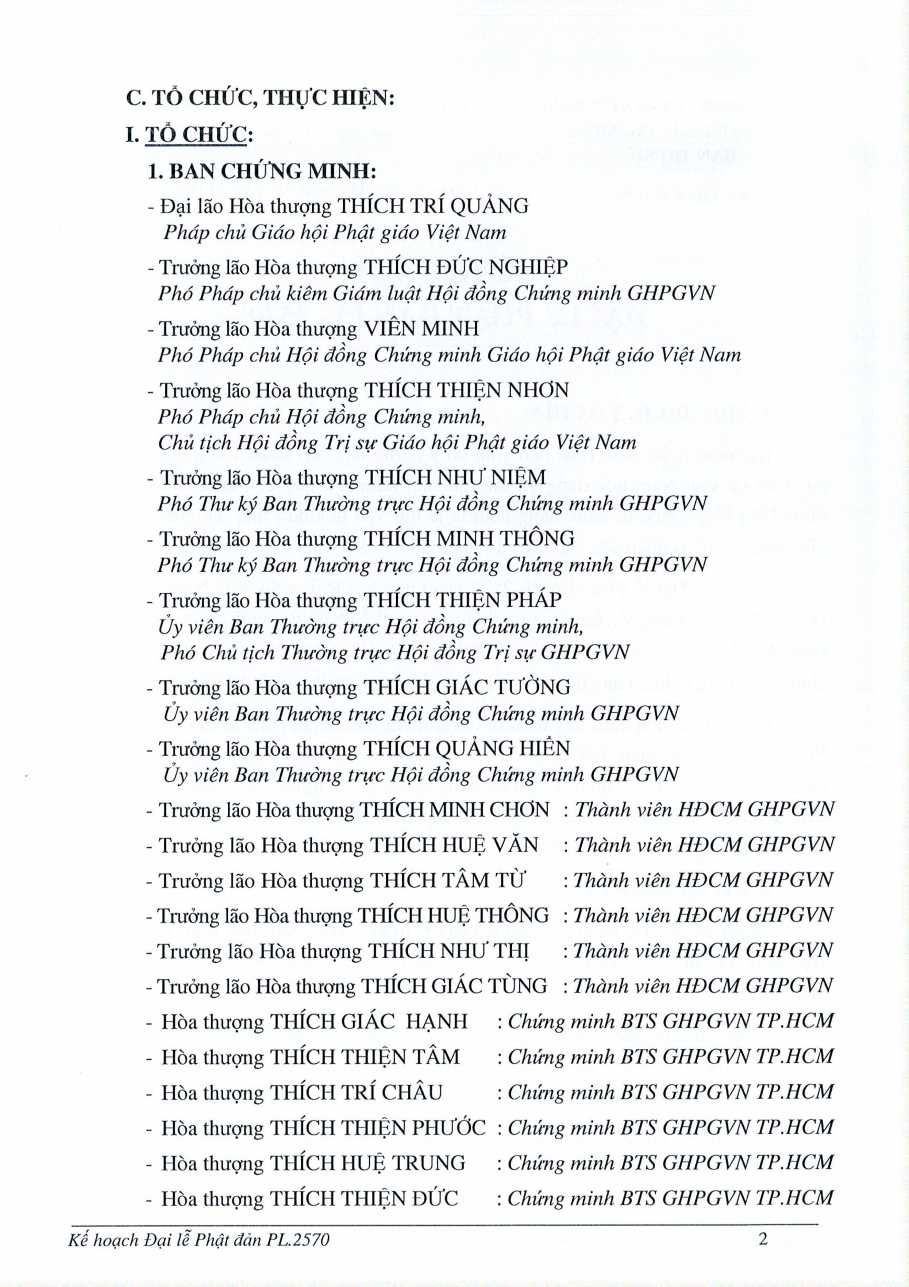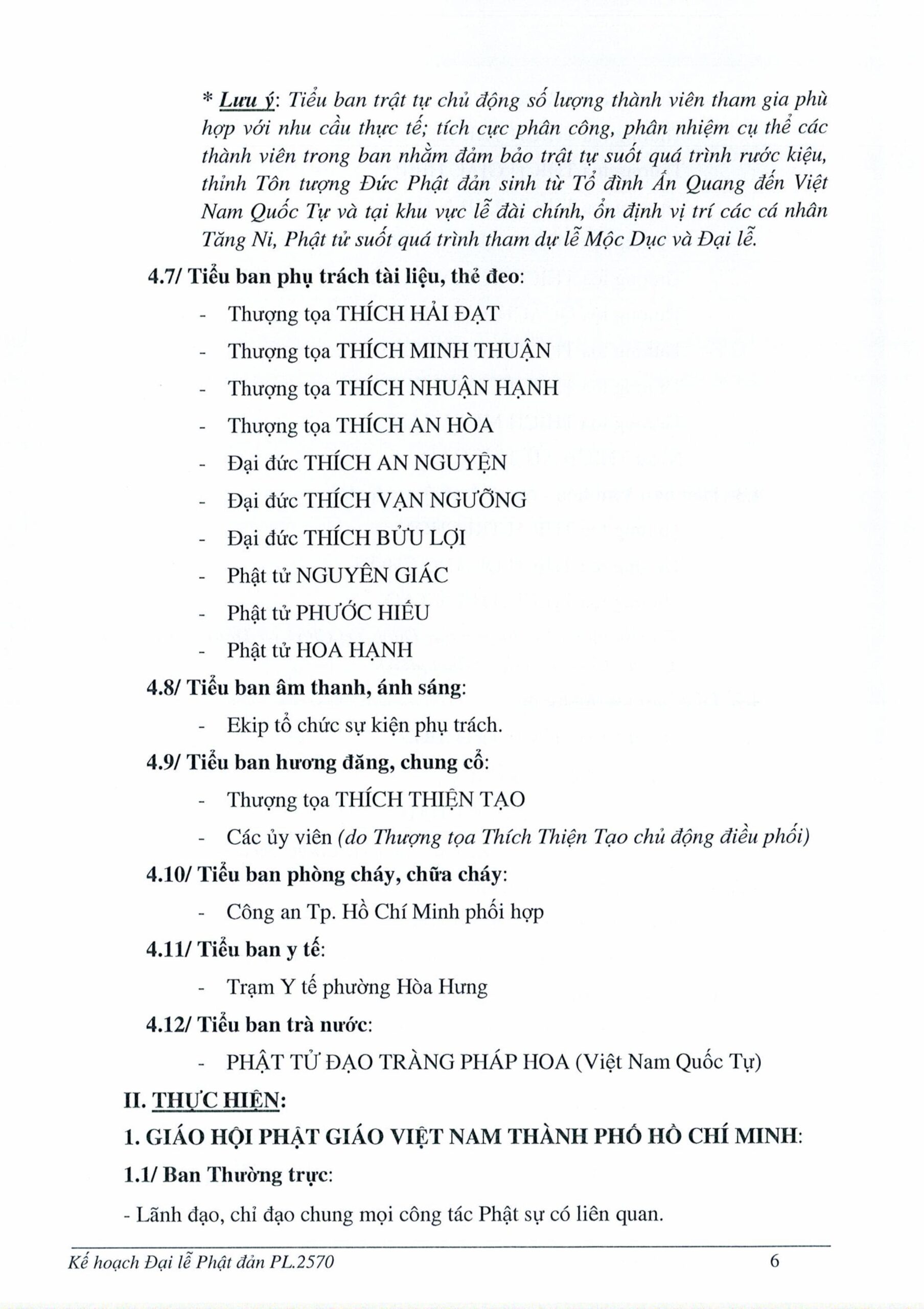 Về tổ chức, Ban Trị sự GHPGVN TP.HCM thành lập Ban Tổ chức và các tiểu ban chuyên trách nhằm triển khai đồng bộ các hoạt động như nghi lễ, nội dung chương trình, truyền thông, hậu cần, an ninh, y tế và trang trí lễ đài.