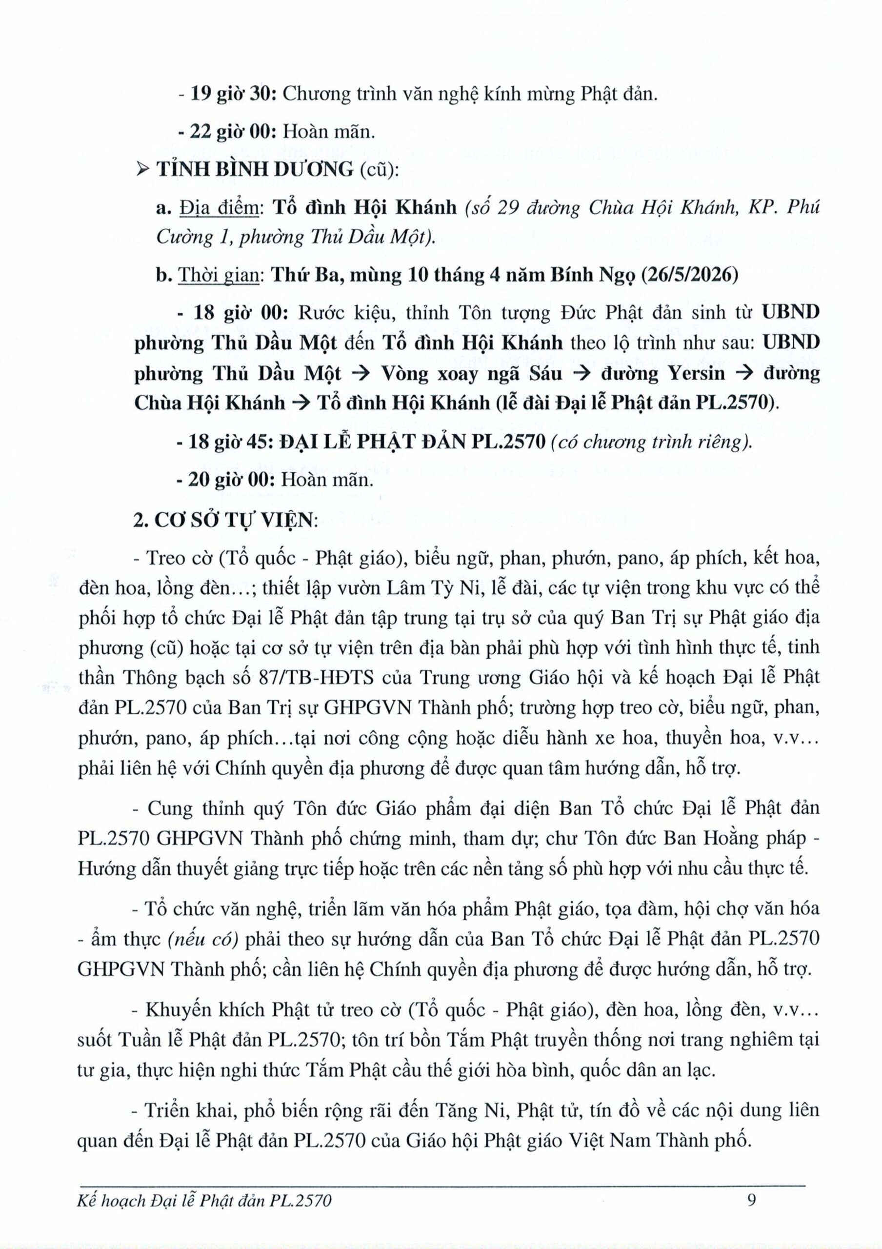 Theo kế hoạch, các tự viện trên địa bàn được khuyến khích tổ chức Đại lễ Phật đản trang nghiêm, thiết trí lễ đài, treo cờ, khẩu hiệu, đồng thời đẩy mạnh công tác tuyên truyền để Phật tử và người dân cùng tham gia hưởng ứng.