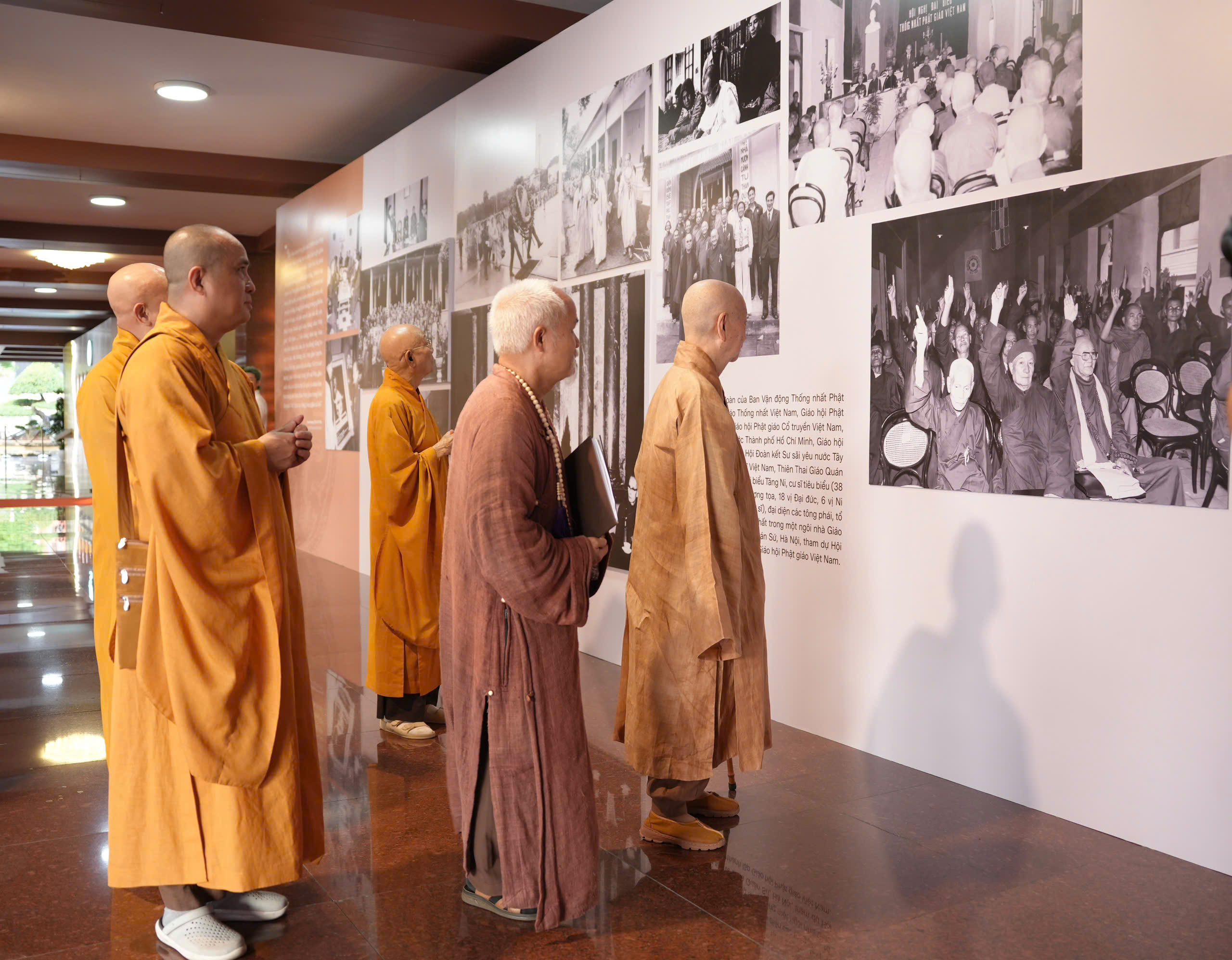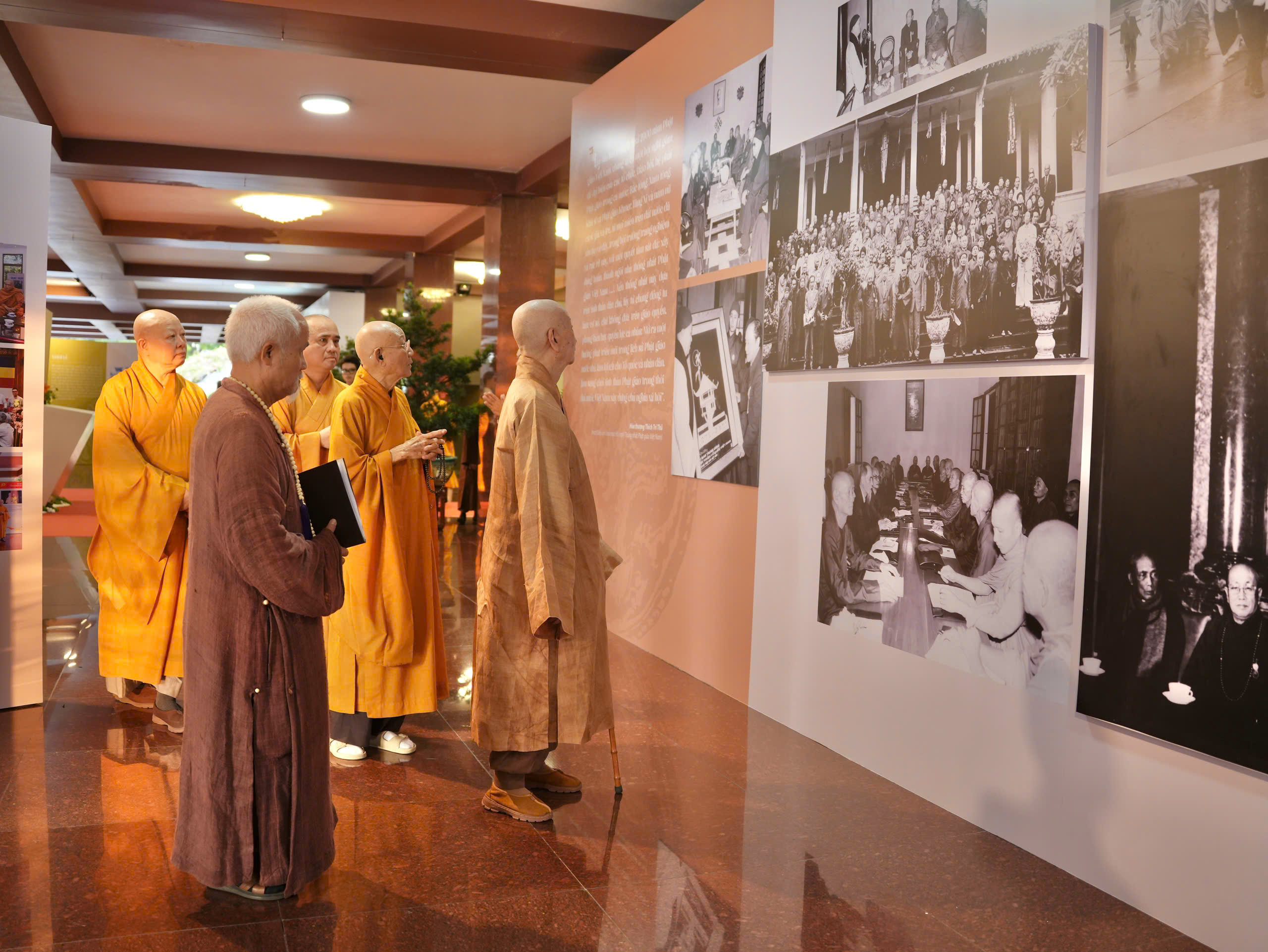 Đức Pháp chủ GHPGVN quang lâm tham quan không gian triển lãm tại Việt Nam Quốc Tự