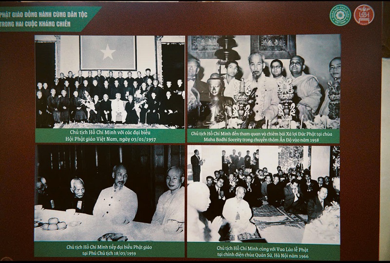 Điểm nhấn đặc biệt của hội thảo là khu vực trưng bày hình ảnh tư liệu quý, tái hiện sinh động những dấu mốc lịch sử gắn liền với chùa chiền, Tăng Ni tiêu biểu và các hoạt động Phật sự đồng hành cùng sự nghiệp cách mạng qua các thời kỳ.