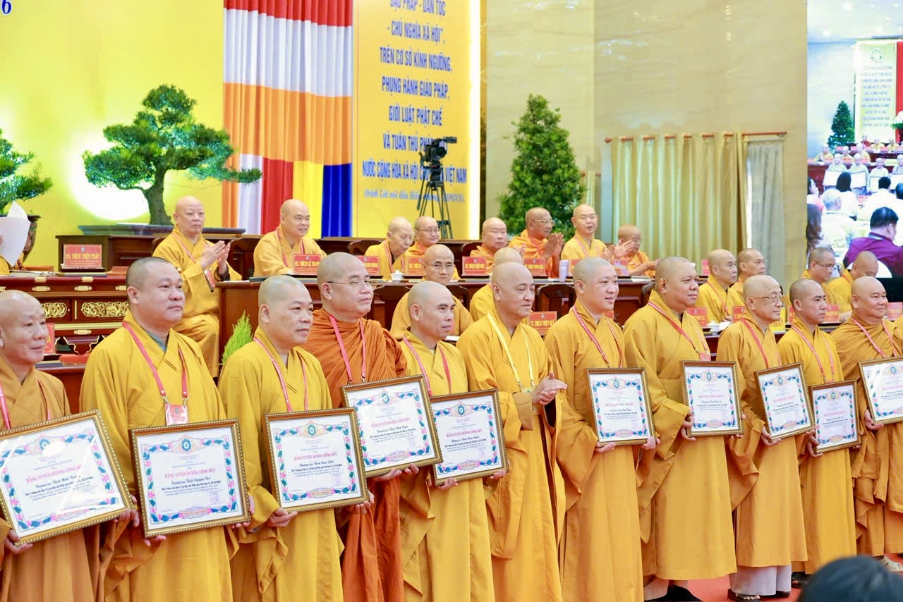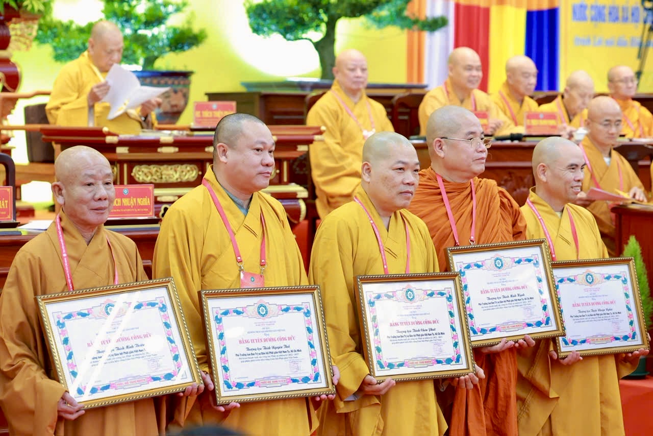 Theo đó, Đại hội đã khen thưởng 87 cá nhân thuộc Trung ương GHPGVN cùng 139 chư tôn đức, cư sĩ của TP.HCM có thành tích tiêu biểu trong công tác Phật sự nhiệm kỳ qua. Đại hội đồng thời thông qua danh sách đề xuất khen thưởng Nhà nước cấp Trung ương do Đại đức Thích Trí Đức trình bày, tiếp tục khẳng định sự trân trọng đối với những đóng góp thiết thực cho Giáo hội và cộng đồng.