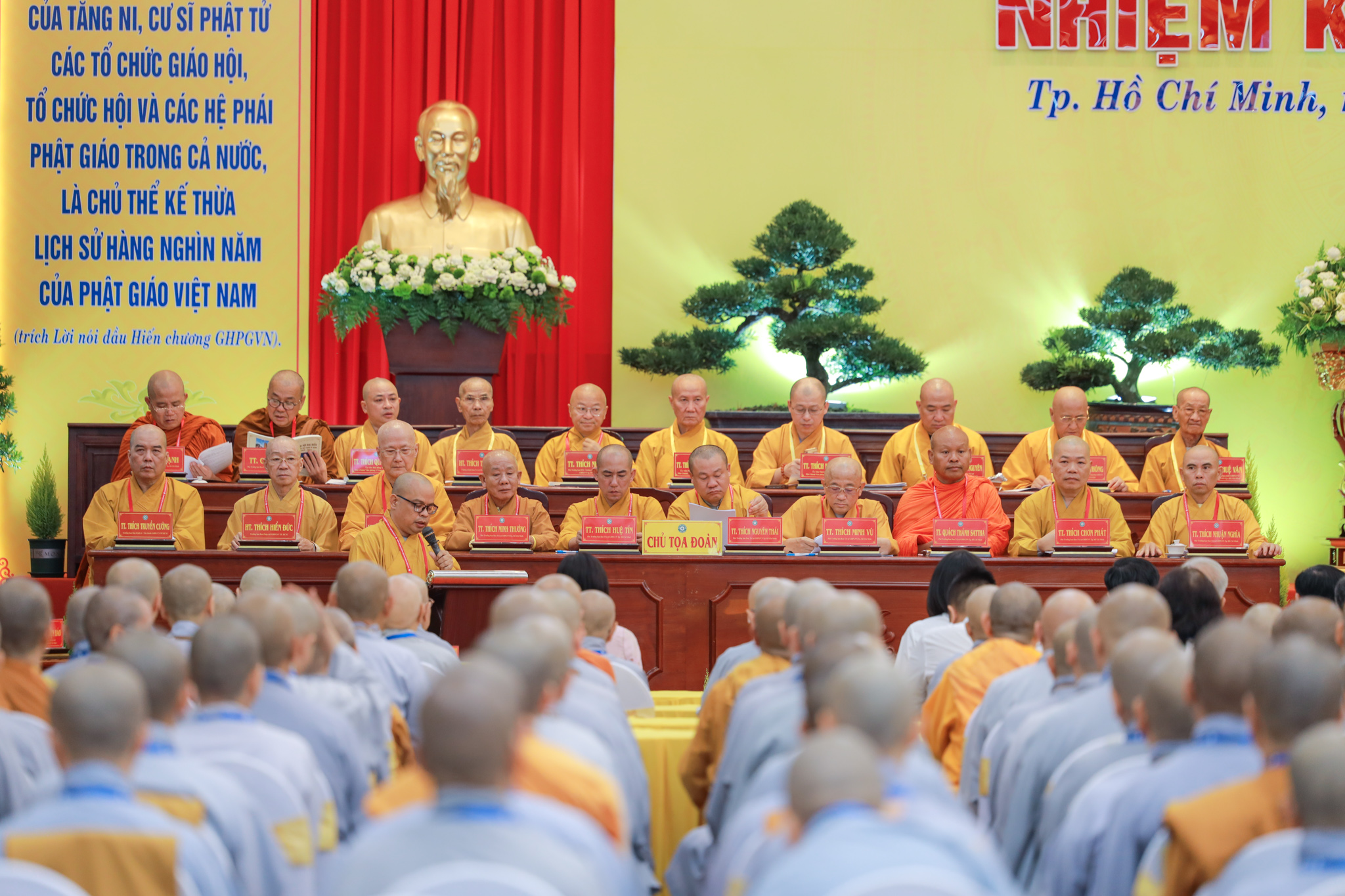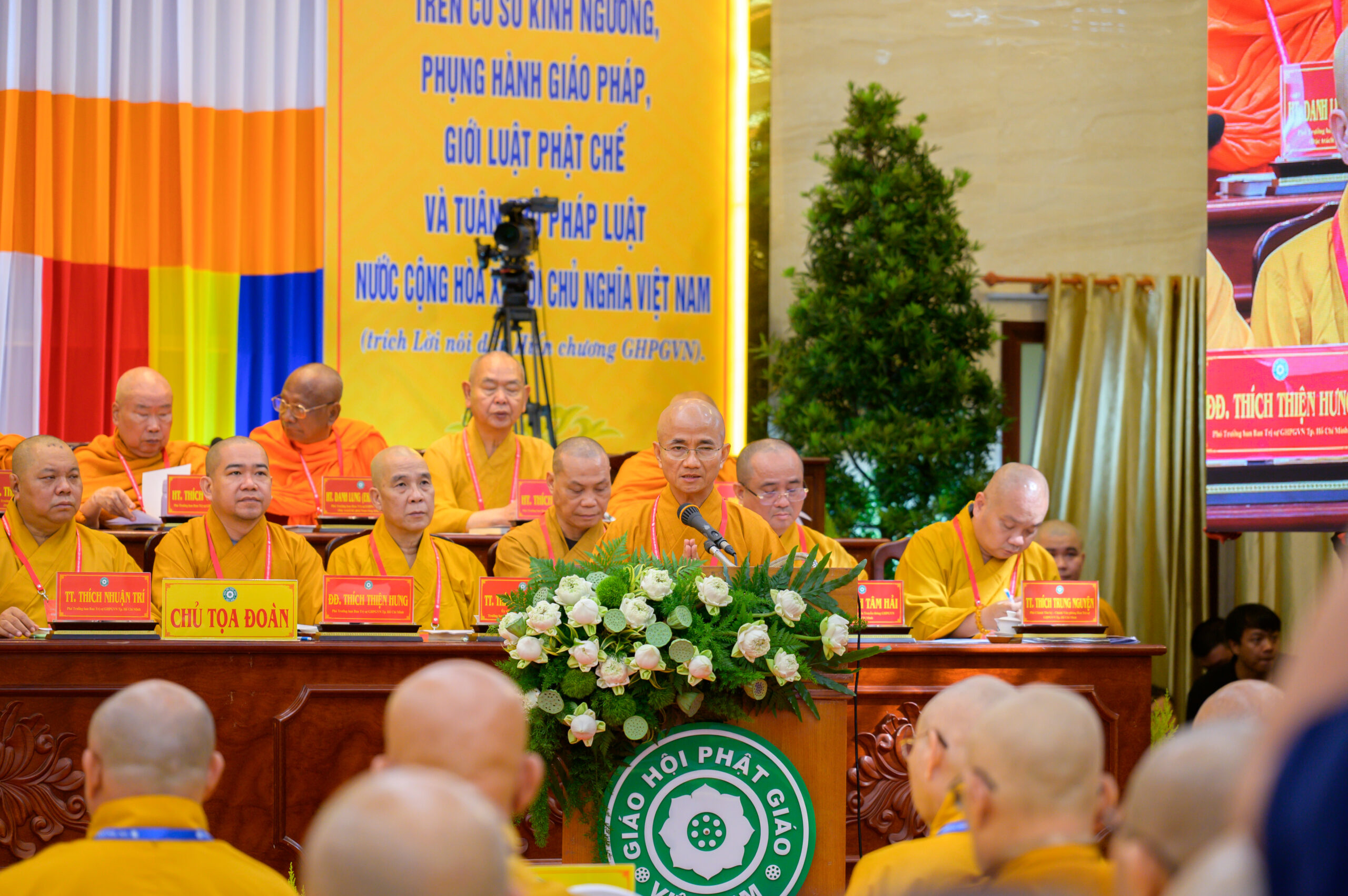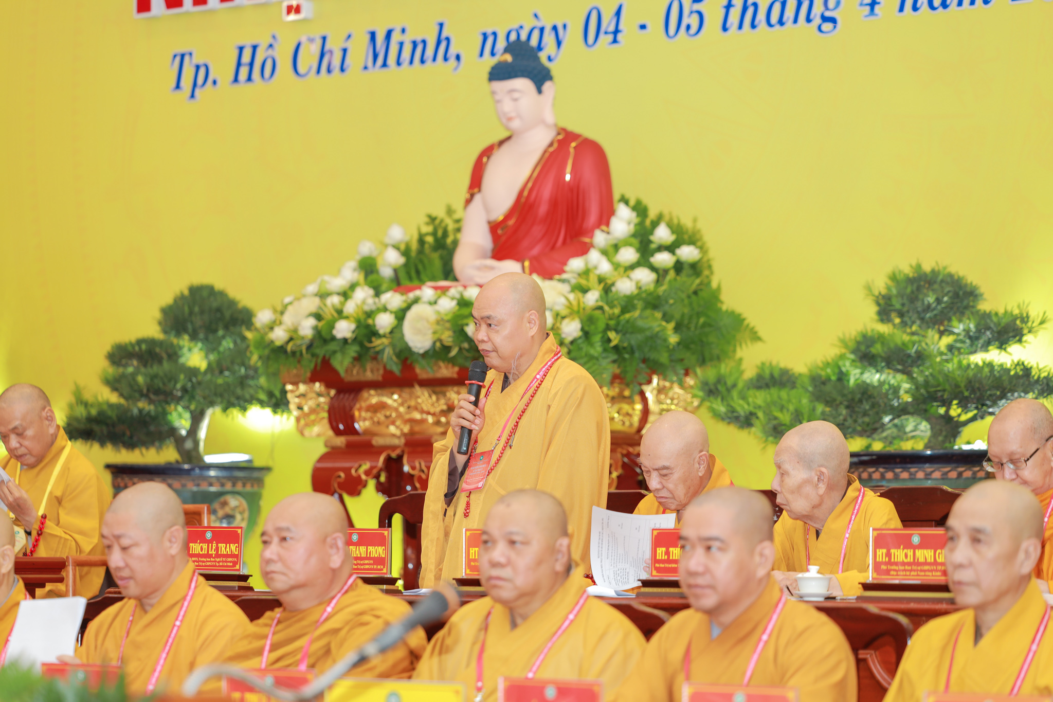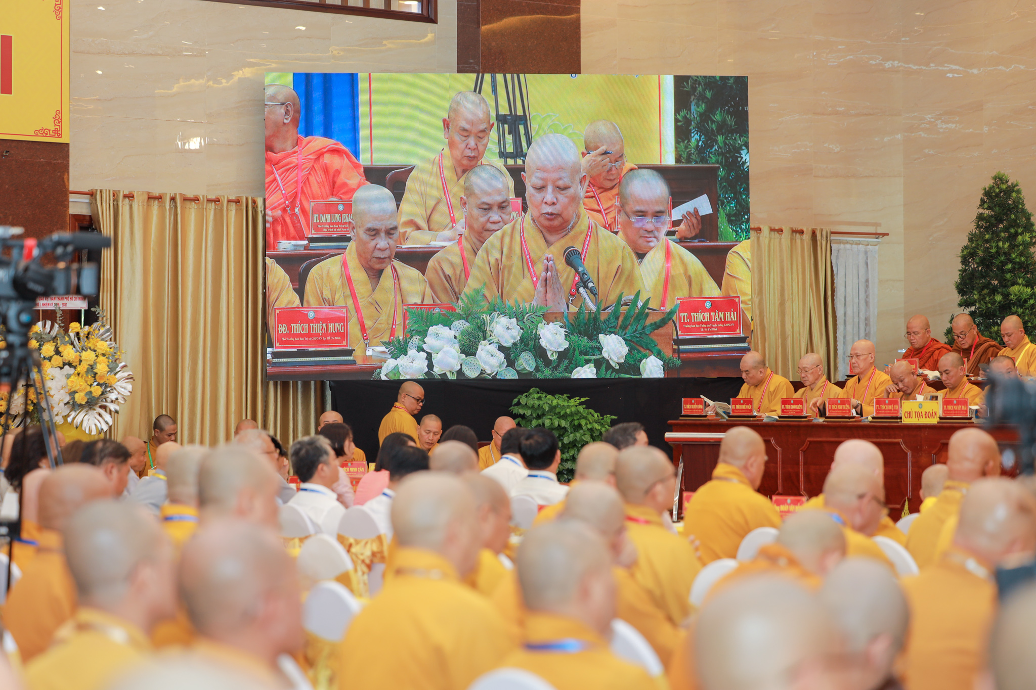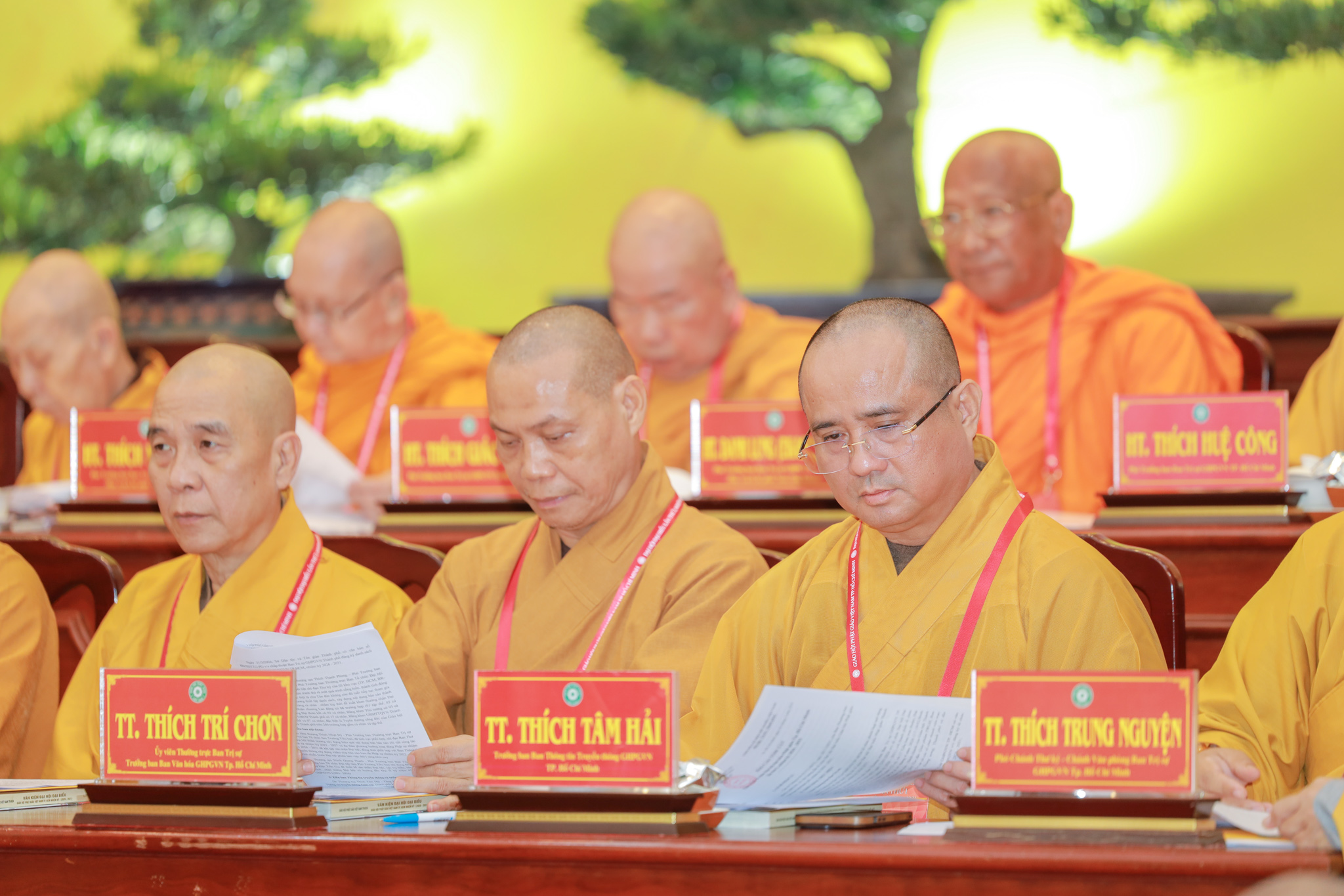 Chứng minh và tham dự phiên làm việc có Hòa thượng Thích Thiện Pháp – Ủy viên Ban Thường trực Hội đồng Chứng minh, Phó Chủ tịch Thường trực Hội đồng Trị sự GHPGVN; Hòa thượng Thích Huệ Thông – Phó Chủ tịch Hội đồng Trị sự, Trưởng ban Pháp chế Trung ương; Hòa thượng Thích Lệ Trang – Phó Chủ tịch Hội đồng Trị sự, Trưởng ban Trị sự GHPGVN TP.HCM, Trưởng ban Tổ chức Đại hội; Thượng tọa Thích Phước Nguyên – Phó Tổng Thư ký Hội đồng Trị sự kiêm Chánh Văn phòng II Trung ương GHPGVN; cùng chư tôn đức Hội đồng Trị sự, Ban Chứng minh, Ban Cố vấn, Ban Thường trực Ban Trị sự GHPGVN TP.HCM, chư tôn đức Ban Trị sự các quận, huyện và đông đảo đại biểu Tăng Ni, đại biểu chính thức, không chính thức được triệu tập.