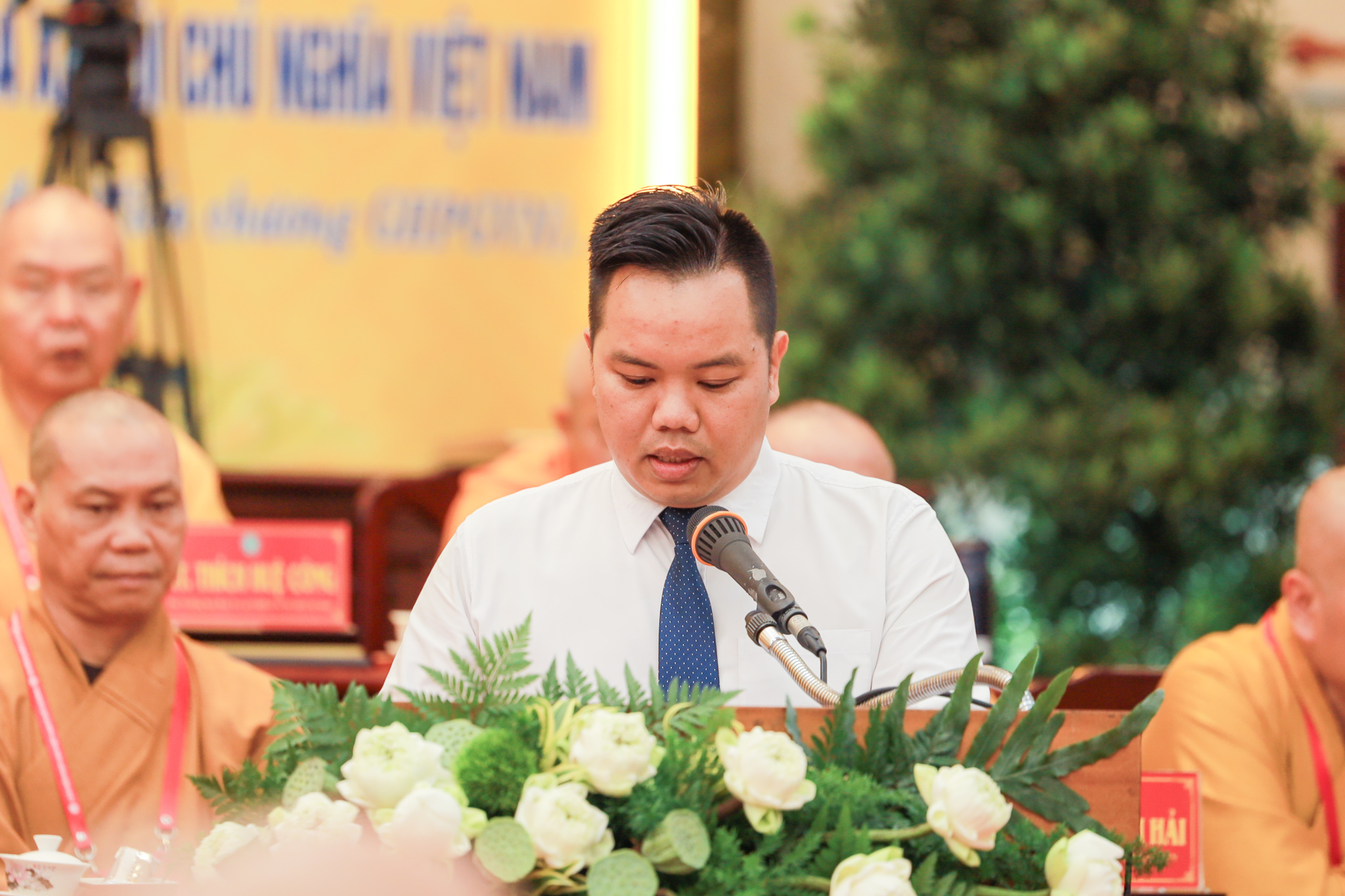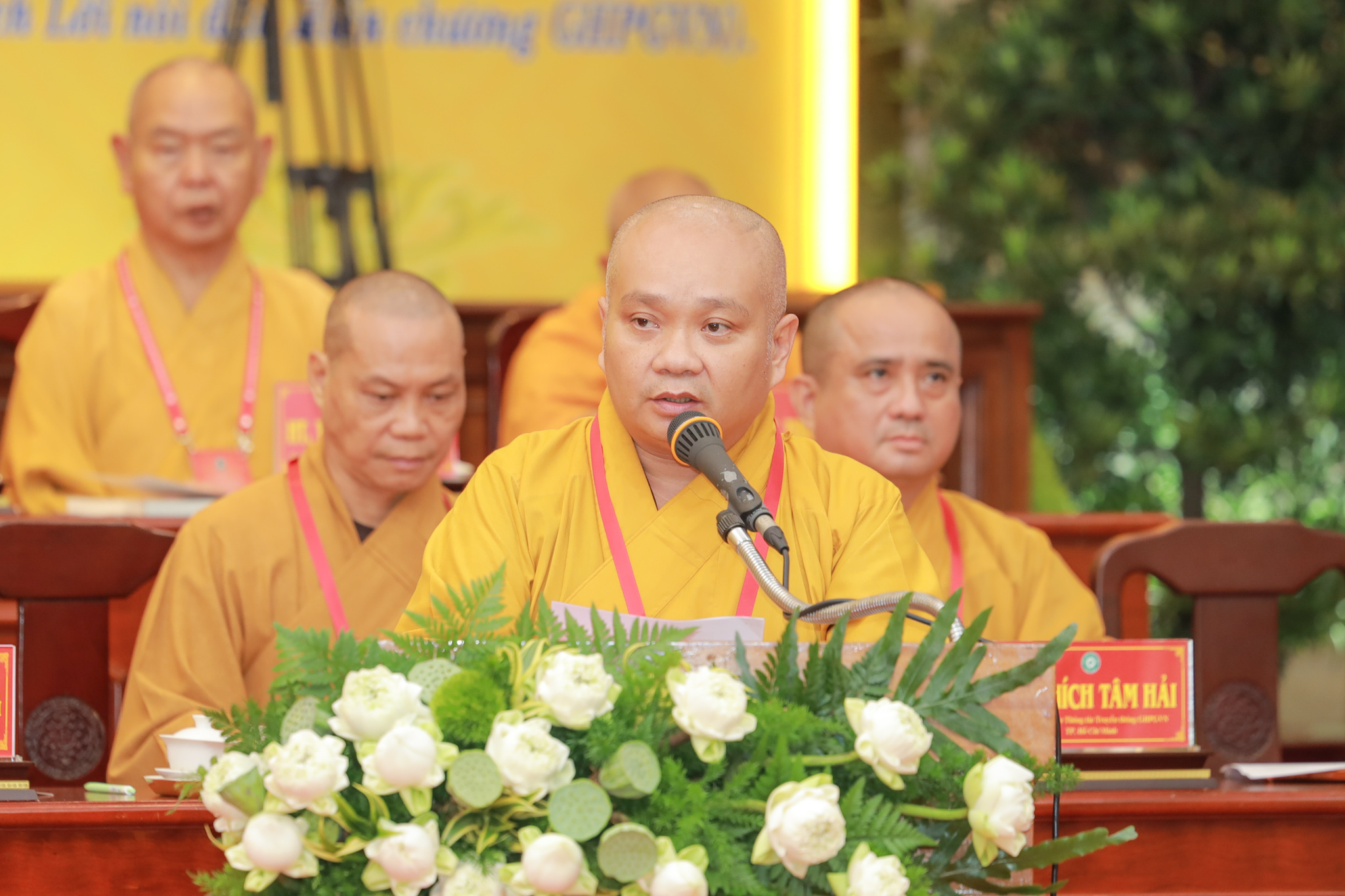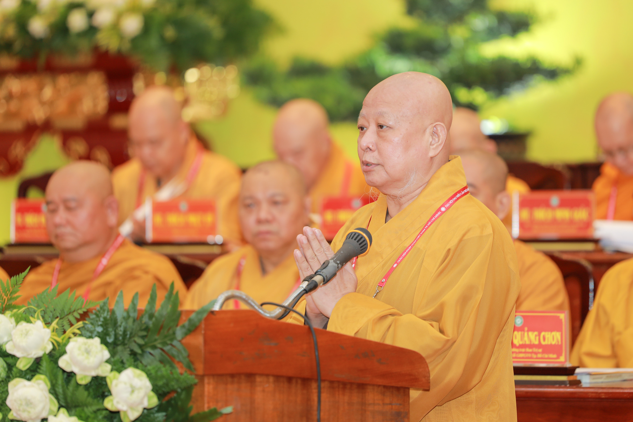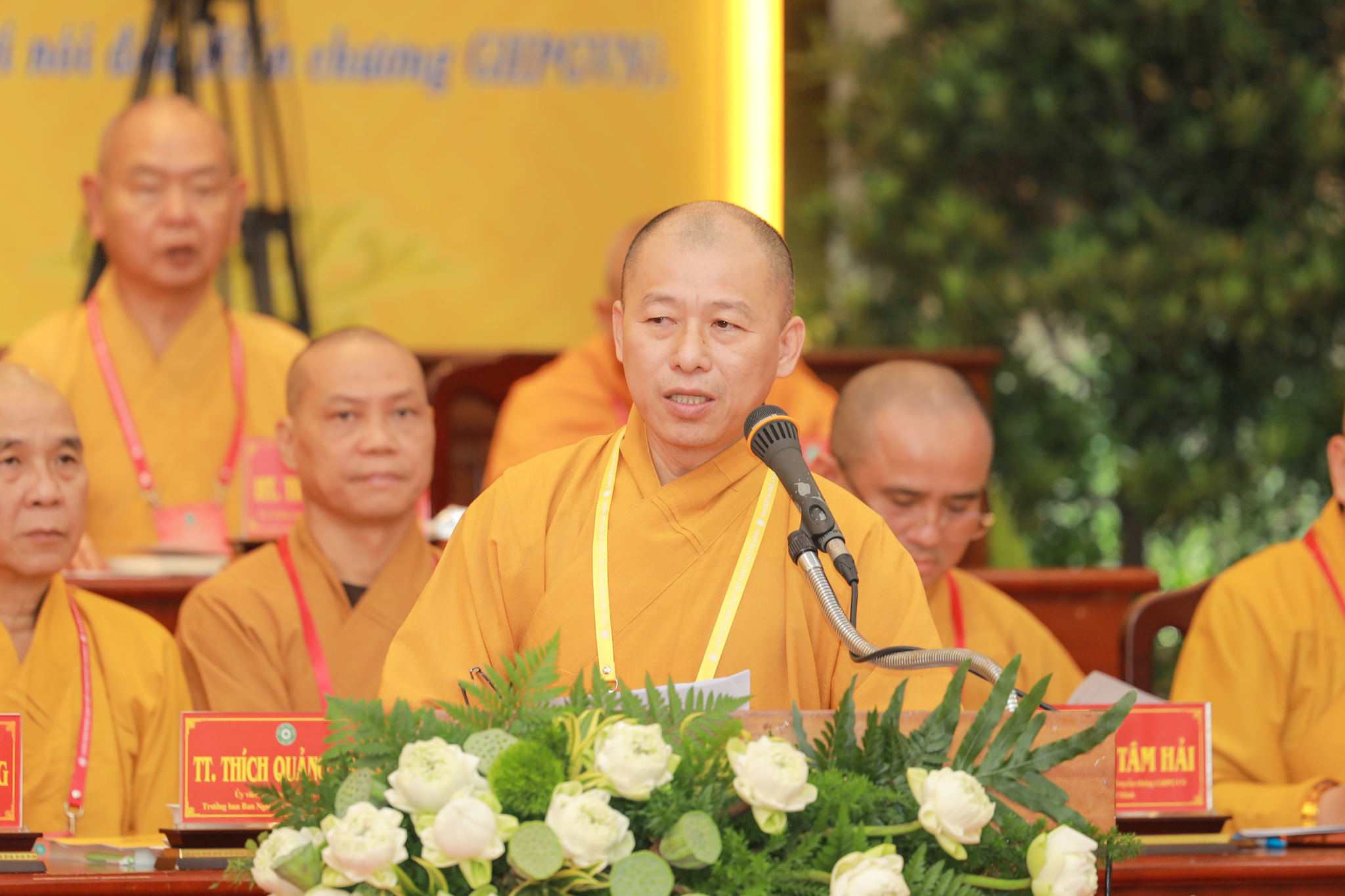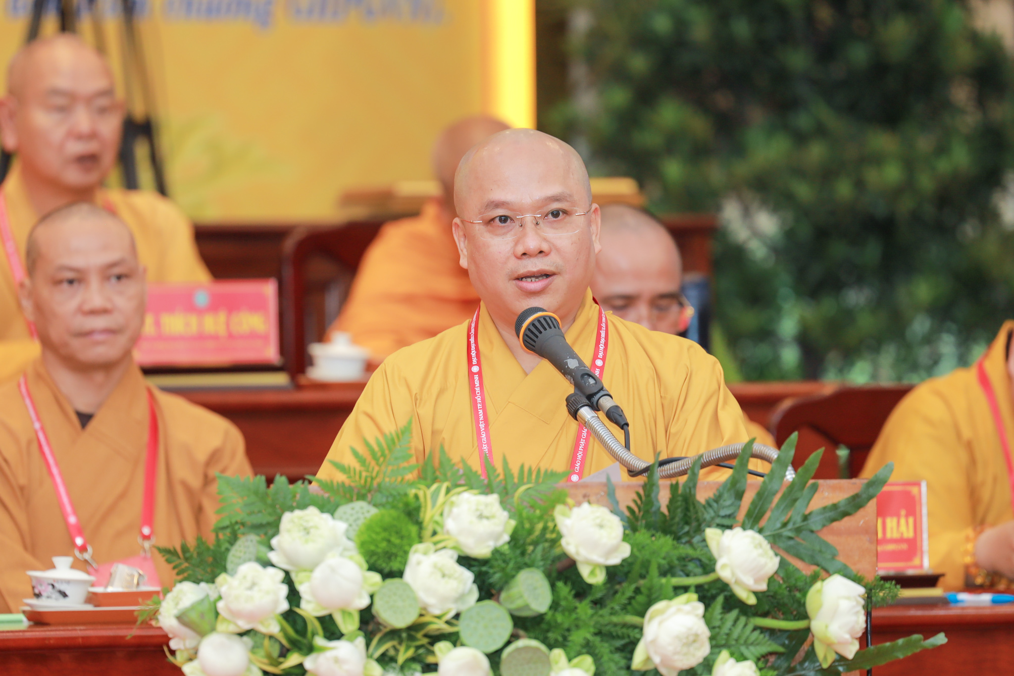 Chứng minh và tham dự phiên làm việc có Hòa thượng Thích Thiện Pháp – Ủy viên Ban Thường trực Hội đồng Chứng minh, Phó Chủ tịch Thường trực Hội đồng Trị sự GHPGVN; Hòa thượng Thích Huệ Thông – Phó Chủ tịch Hội đồng Trị sự, Trưởng ban Pháp chế Trung ương; Hòa thượng Thích Lệ Trang – Phó Chủ tịch Hội đồng Trị sự, Trưởng ban Trị sự GHPGVN TP.HCM, Trưởng ban Tổ chức Đại hội; Thượng tọa Thích Phước Nguyên – Phó Tổng Thư ký Hội đồng Trị sự kiêm Chánh Văn phòng II Trung ương GHPGVN; cùng chư tôn đức Hội đồng Trị sự, Ban Chứng minh, Ban Cố vấn, Ban Thường trực Ban Trị sự GHPGVN TP.HCM, chư tôn đức Ban Trị sự các quận, huyện và đông đảo đại biểu Tăng Ni, đại biểu chính thức, không chính thức được triệu tập.