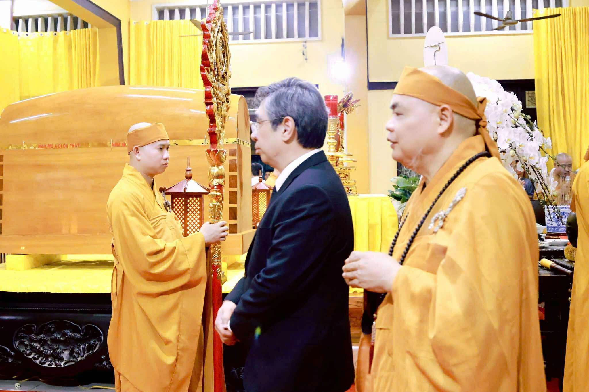 Tối cùng ngày, phái đoàn Sở Dân tộc – Tôn giáo TP.HCM do ông Nguyễn Văn Đồng – Thành ủy viên, Giám đốc Sở Dân tộc – Tôn giáo TP.HCM dẫn dầu cũng đã trở về tổ đình Vĩnh Nghiêm dâng hương kính viếng cố Trưởng lão Hoà thượng Thích Trí Tịnh.
