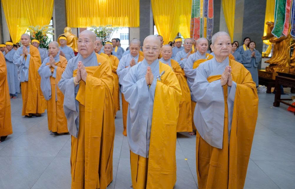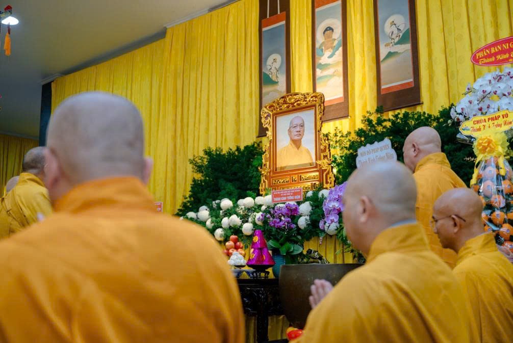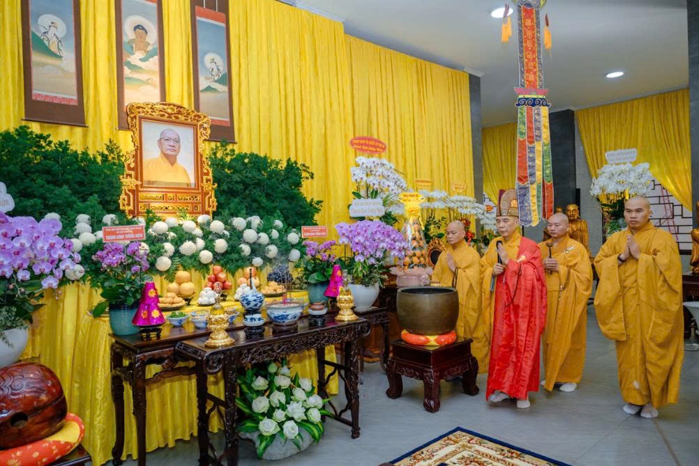 Lễ tưởng niệm diễn ra trong bầu không khí thanh tịnh tại Giác linh đường. Từng làn khói trầm nhẹ nhàng lan tỏa, gợi nhắc hình ảnh giản dị của Trưởng lão khi còn sinh tiền. Hòa thượng Thích Lệ Trang – Phó Chủ tịch HĐTS, Trưởng Ban Trị sự GHPGVN TP.HCM – xướng lễ và chủ trì thời kinh tưởng niệm. Chư Tăng Ni, Phật tử đồng tụng niệm, hồi hướng công đức lên bậc Thầy khả kính.