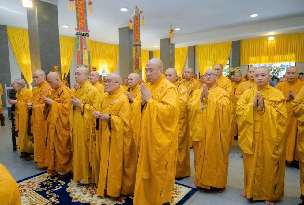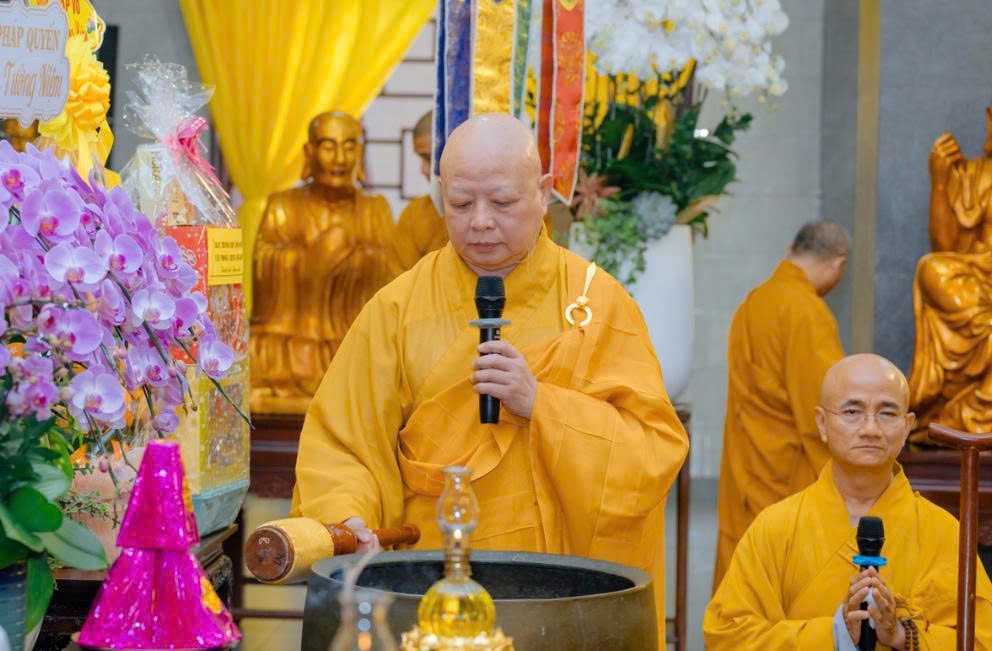 Lễ tưởng niệm diễn ra trong bầu không khí thanh tịnh tại Giác linh đường. Từng làn khói trầm nhẹ nhàng lan tỏa, gợi nhắc hình ảnh giản dị của Trưởng lão khi còn sinh tiền. Hòa thượng Thích Lệ Trang – Phó Chủ tịch HĐTS, Trưởng Ban Trị sự GHPGVN TP.HCM – xướng lễ và chủ trì thời kinh tưởng niệm. Chư Tăng Ni, Phật tử đồng tụng niệm, hồi hướng công đức lên bậc Thầy khả kính.