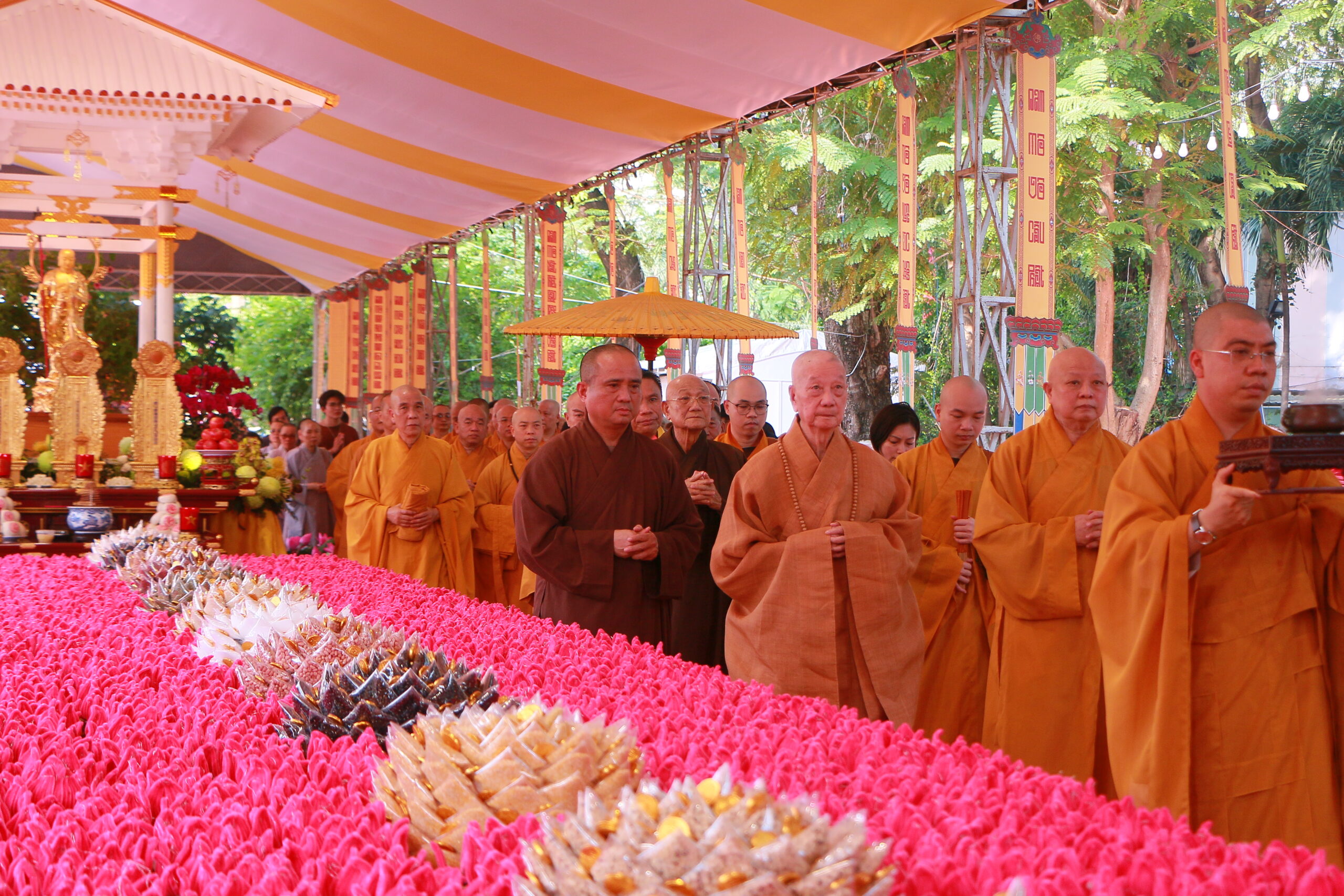 Chứng minh và tham dự buổi lễ có: Đức Pháp chủ GHPGVN – Đại lão Hòa thượng Thích Trí Quảng; Trưởng lão Hòa thượng Thích Minh Thông – Phó Thư ký HĐCM GHPGVN; Hòa thượng Thích Lệ Trang – Phó Chủ tịch HĐTS, Trưởng Ban Nghi lễ Trung ương, Trưởng BTS GHPGVN TP.HCM; cùng chư tôn đức BTS GHPGVN TP, các ban ngành trực thuộc,