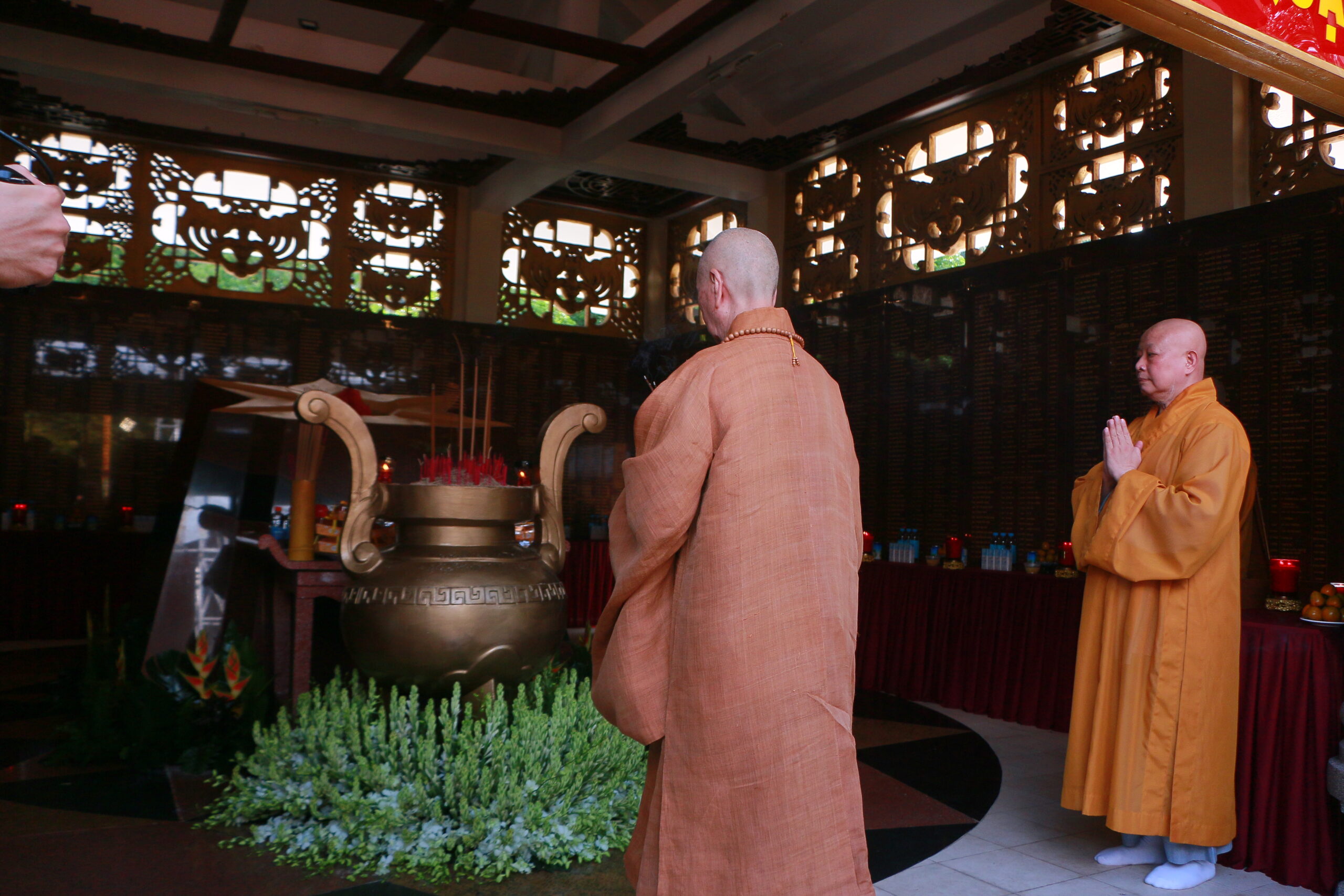 Trước lễ khai kinh, Đức Pháp chủ đã đến dâng hương tưởng niệm tại khuôn viên nghĩa trang cũ – nay là một phần của Công viên Lê Thị Riêng. Nơi đây từng là nơi yên nghỉ của hàng ngàn anh hùng liệt sĩ, đồng bào tử nạn vì chiến tranh.