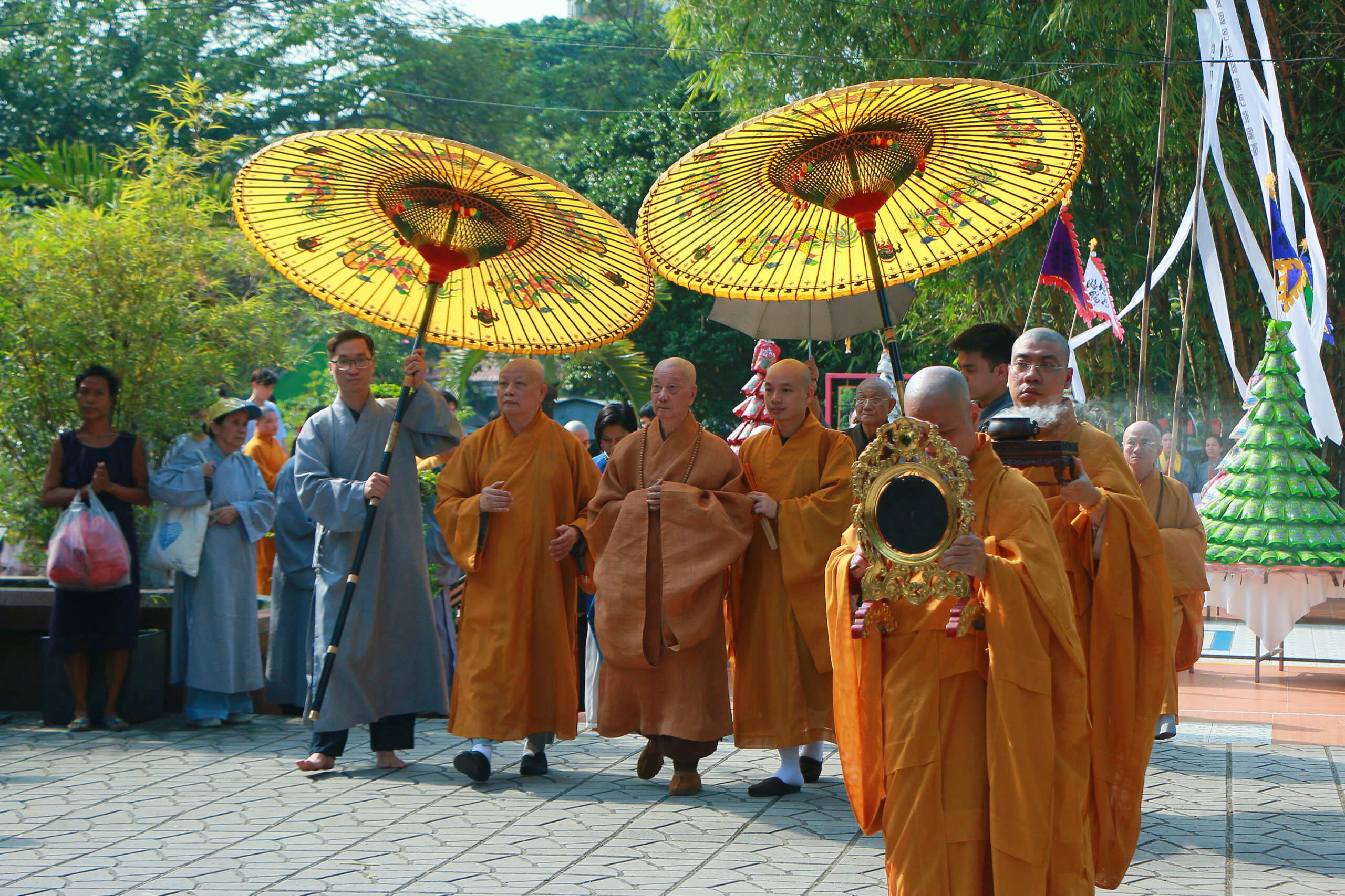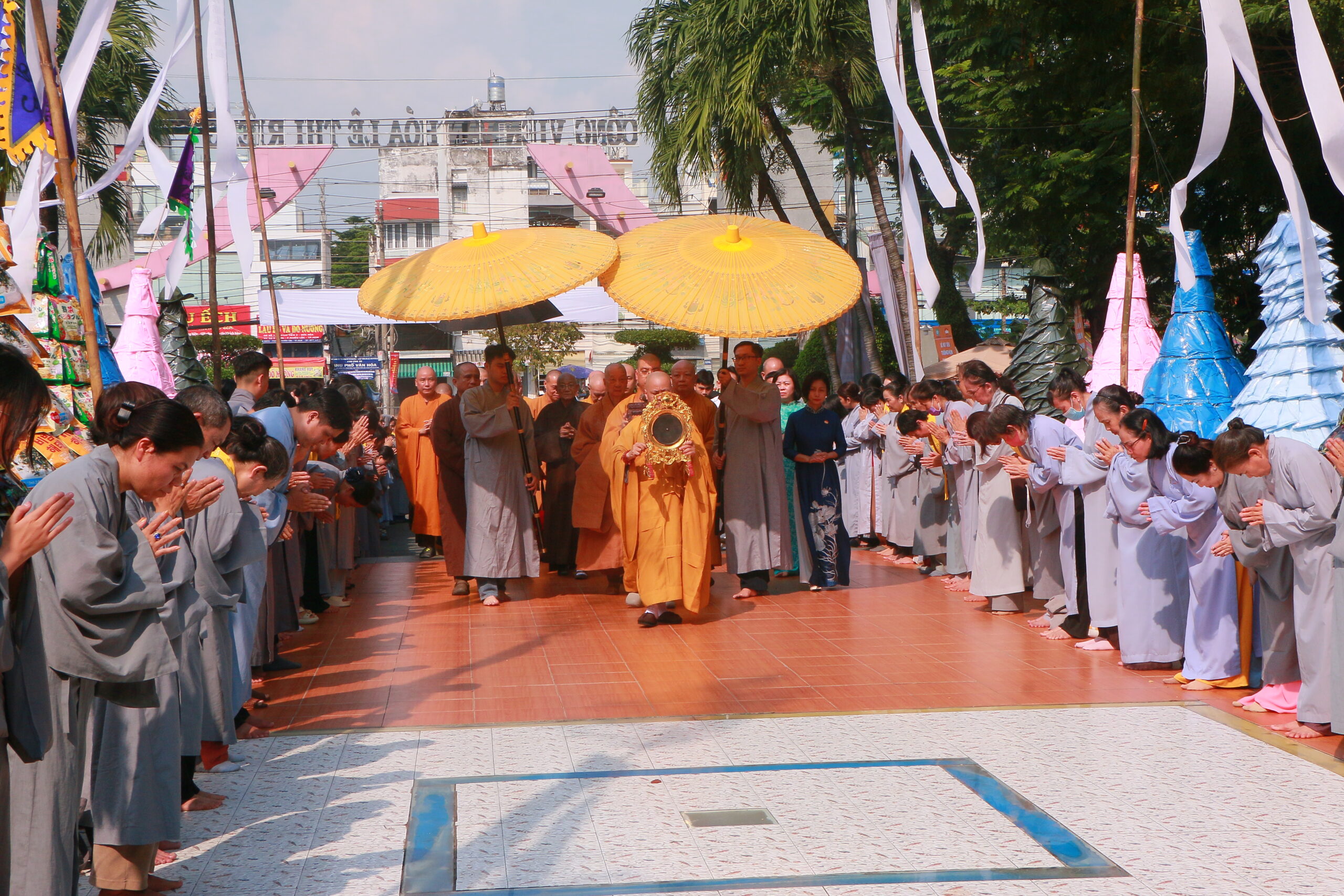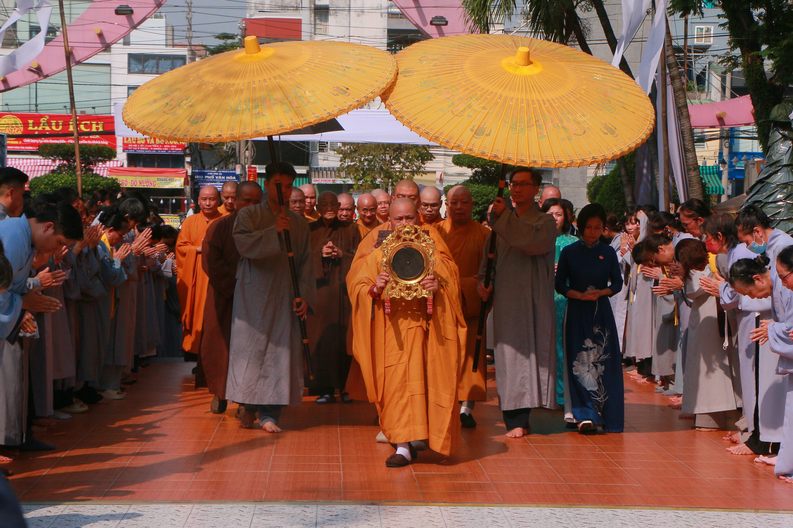 Về phía chính quyền địa phương có bà Trần Thanh Ngọc – Chủ tịch Mặt trận Tổ Quốc phường Hòa Hưng cùng đông đảo đồng bào Phật tử, người dân TP.HCM.
