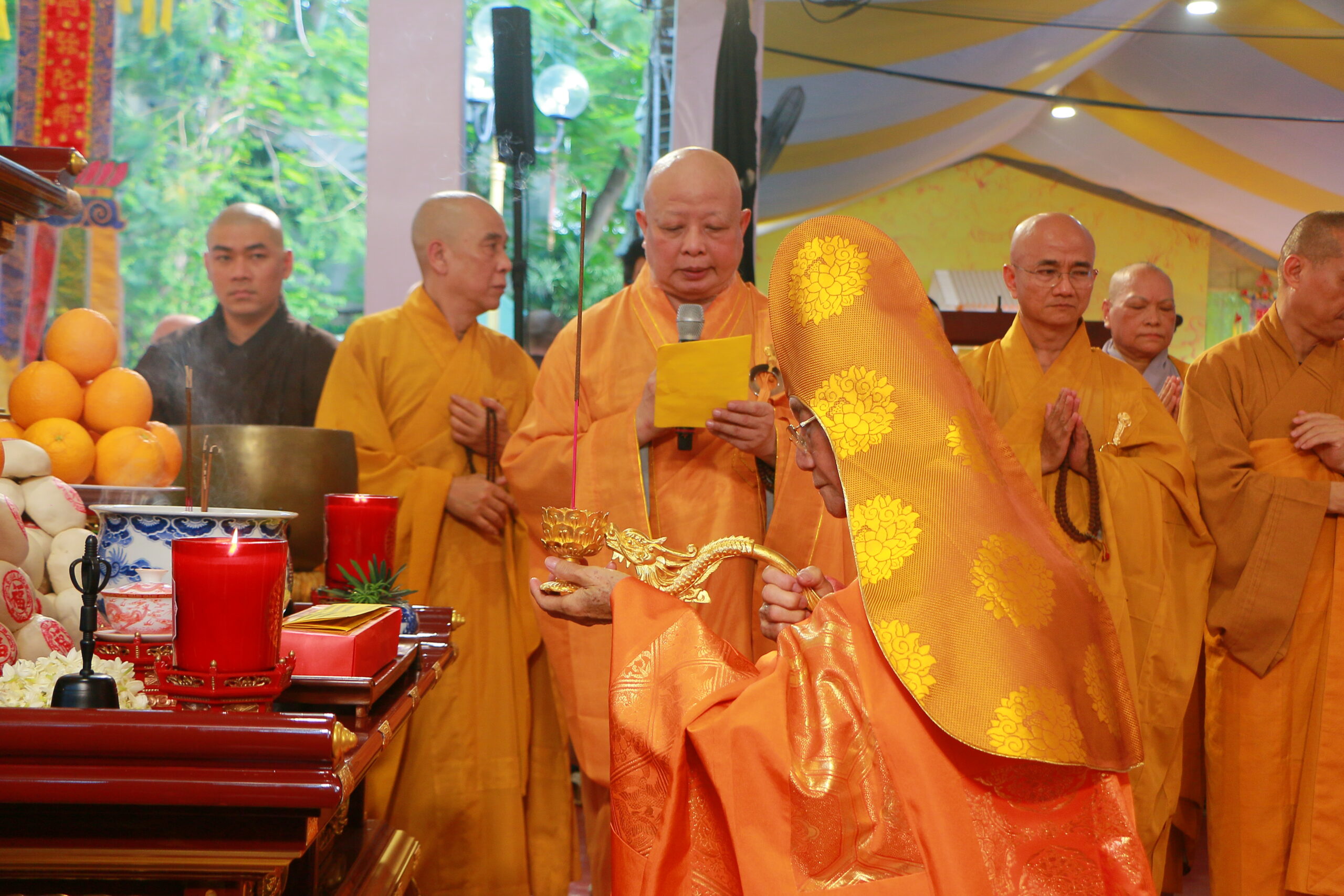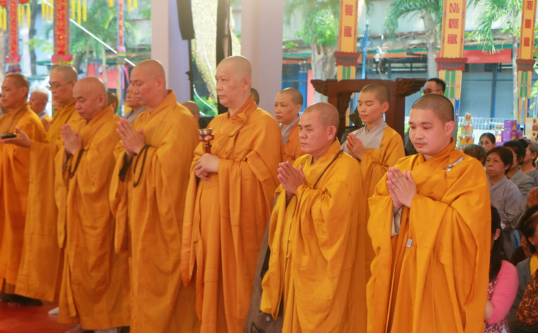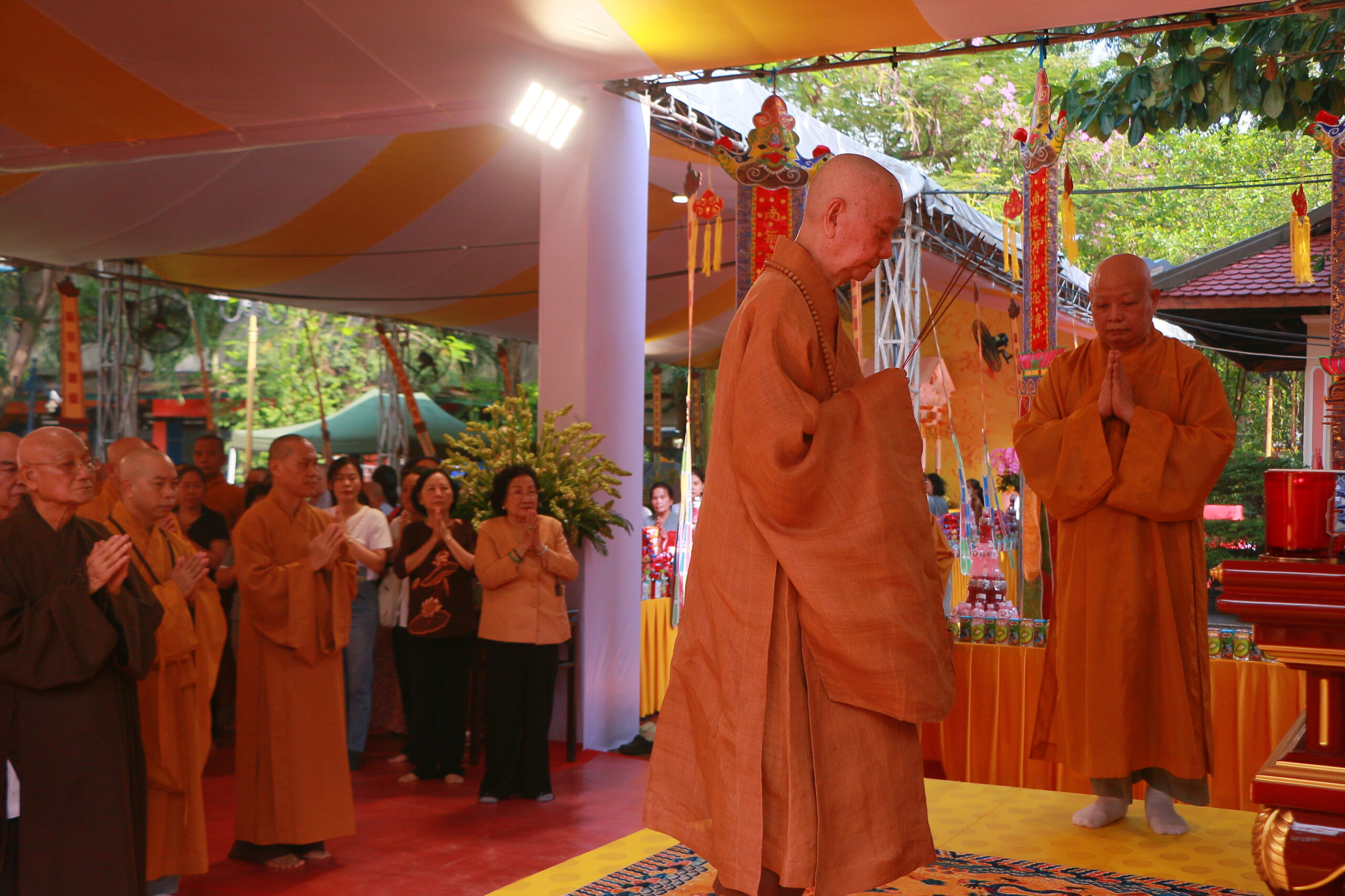 Chứng minh và tham dự buổi lễ có: Đức Pháp chủ GHPGVN – Đại lão Hòa thượng Thích Trí Quảng; Trưởng lão Hòa thượng Thích Minh Thông – Phó Thư ký HĐCM GHPGVN; Hòa thượng Thích Lệ Trang – Phó Chủ tịch HĐTS, Trưởng Ban Nghi lễ Trung ương, Trưởng BTS GHPGVN TP.HCM; cùng chư tôn đức BTS GHPGVN TP, các ban ngành trực thuộc,