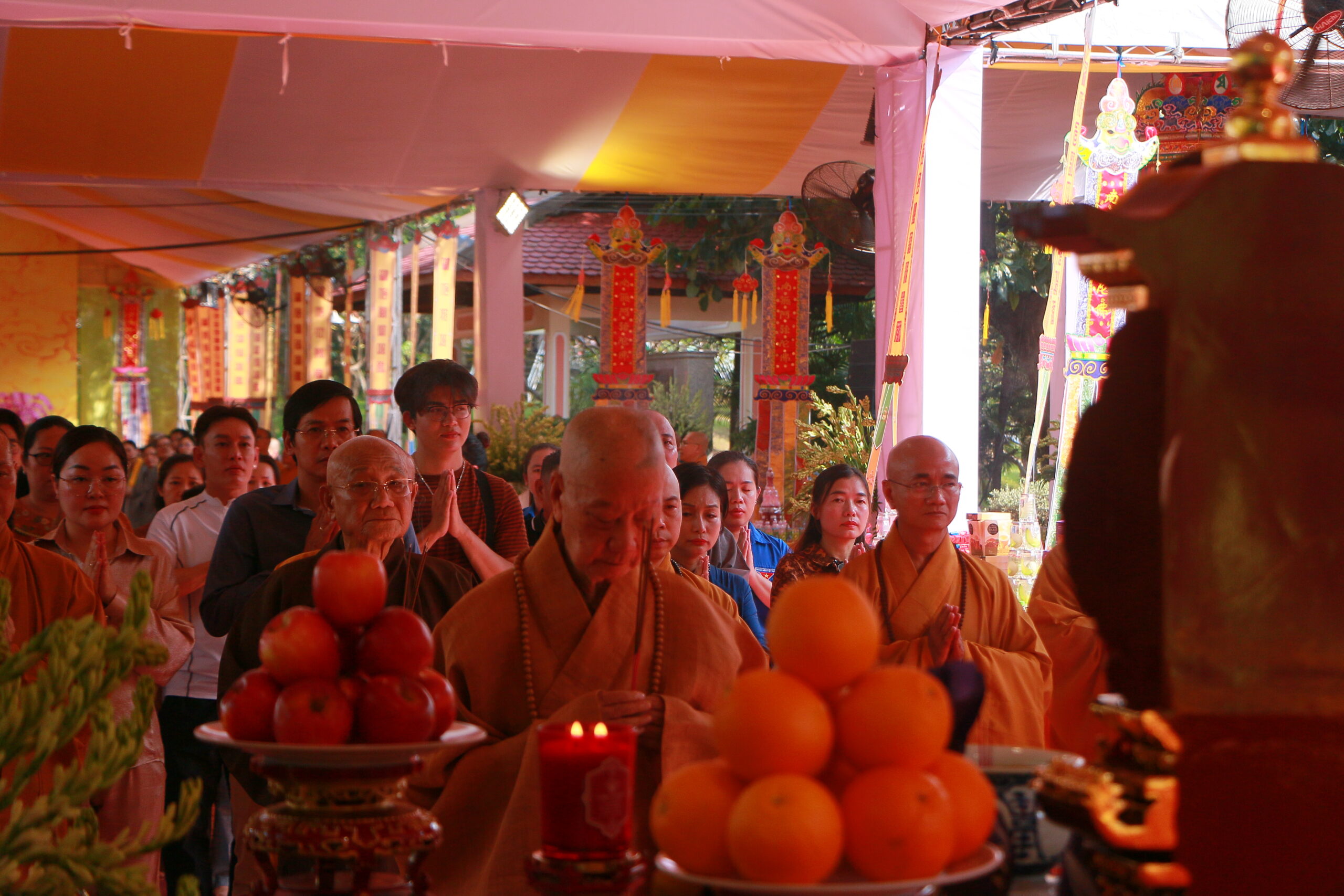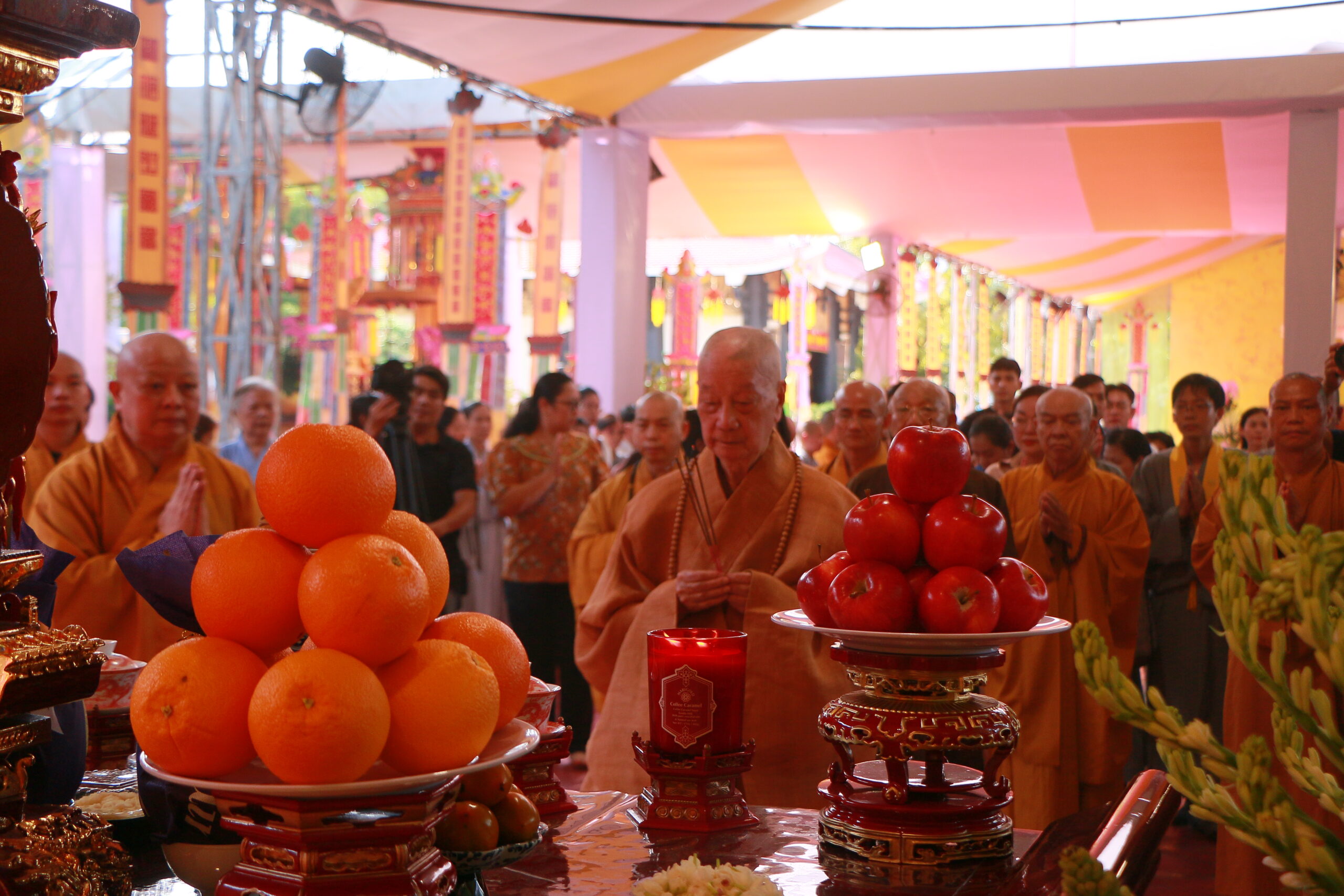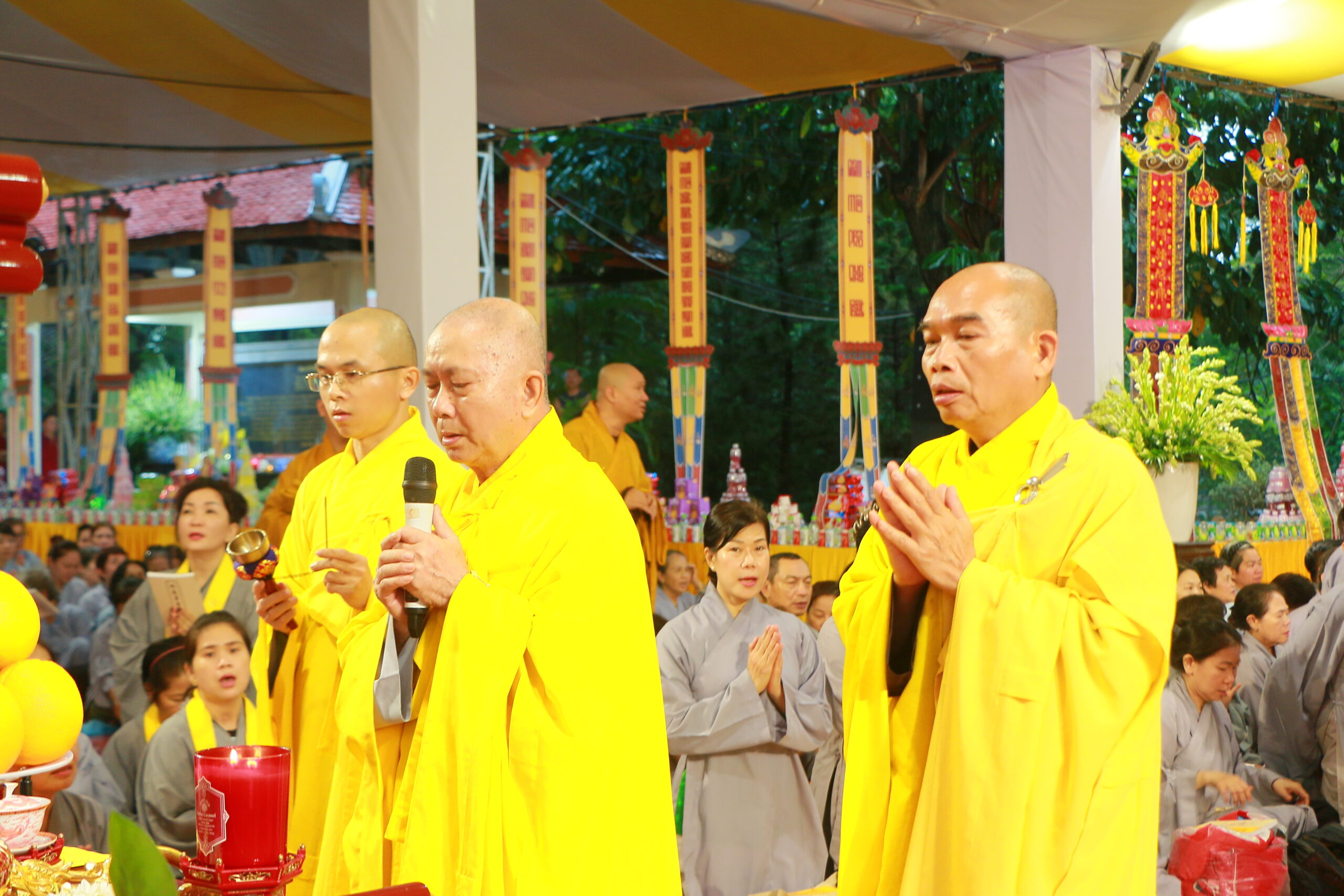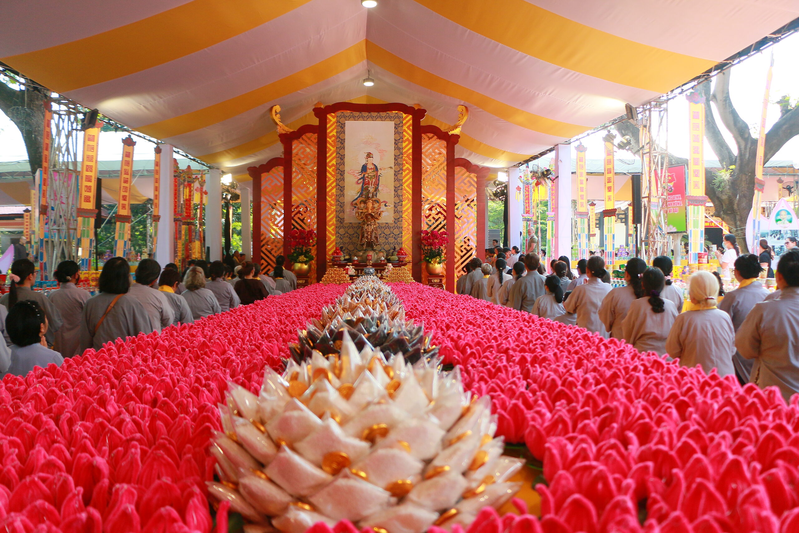 Đến 18g00, chư tôn đức cử hành lễ thắp nến tri ân và phóng đăng, lan tỏa ánh sáng của từ bi, tưởng nhớ công lao to lớn của những người đã ngã xuống vì hòa bình dân tộc.