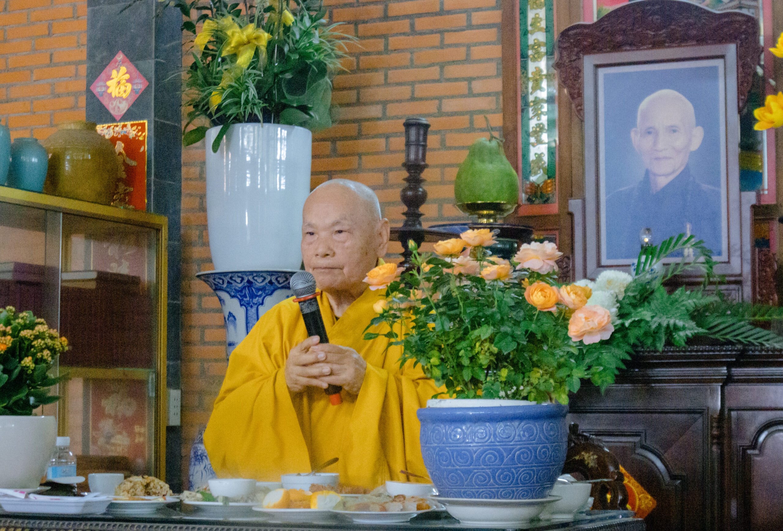 Trong không khí trang nghiêm, đối trước di ảnh cố Trưởng lão Hoà thượng Thích Từ Thông, chư vị giáo phẩm chứng minh thực hiện nghi thức dâng trà và phạm thực cúng dường, theo đó đại chúng cùng một lòng thành kính hướng về Giác linh bậc tòng lâm thạch trụ, tri ân công đức cao dày của ngài đã dành đạo pháp và dân tộc.