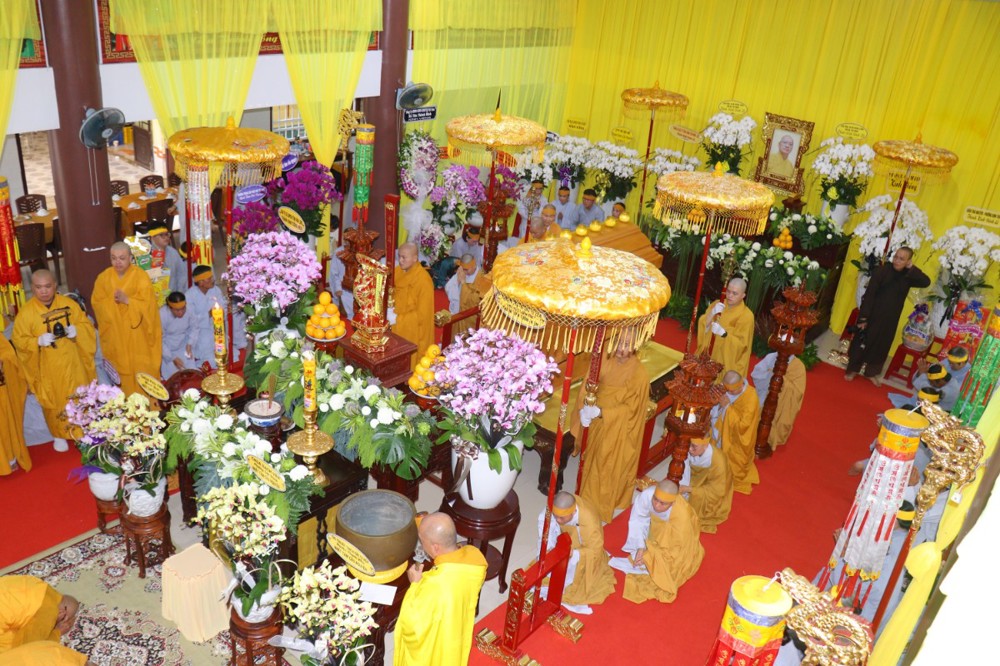 Vào lúc 10g00, lễ nhập tháp được cử hành theo nghi thức truyền thống Phật giáo dưới sự chủ sám của Hòa thượng Thích Lệ Trang.
