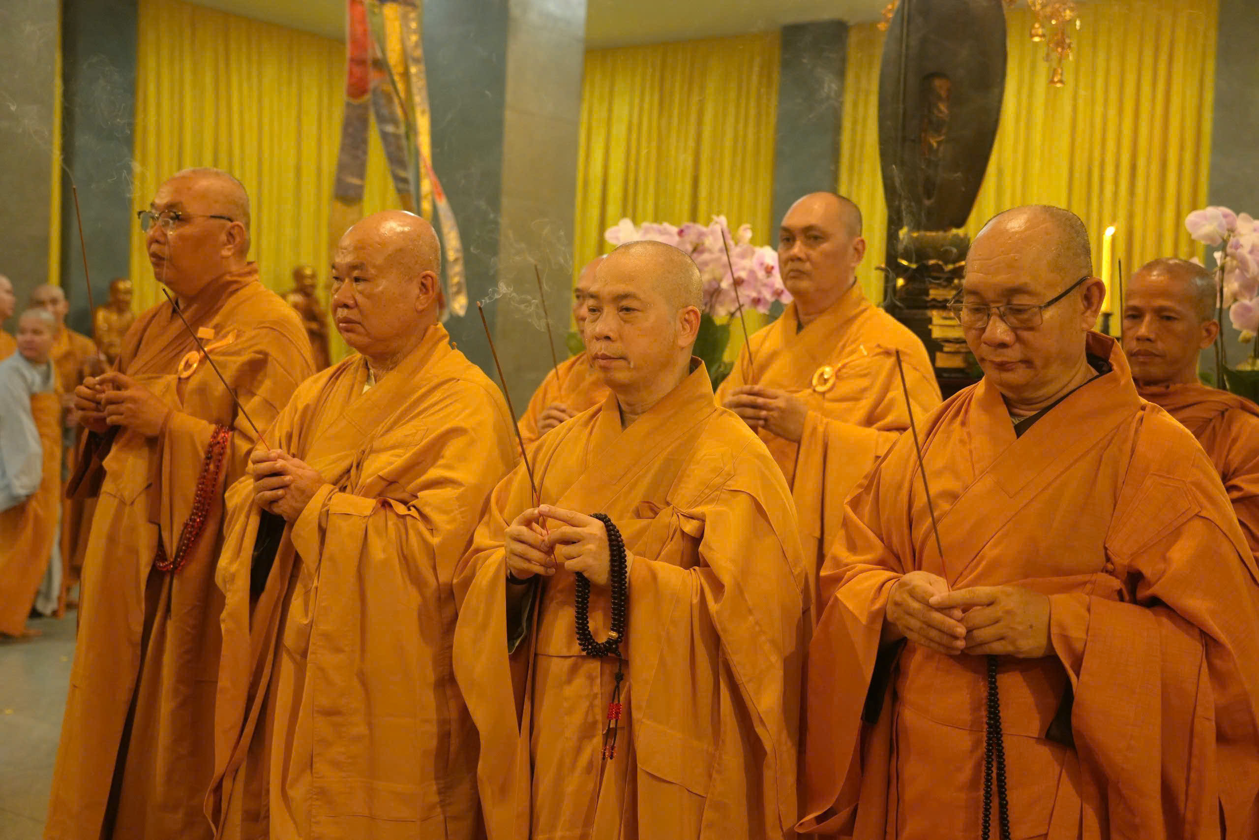 Chứng minh và tham dự buổi lễ hộ niệm có Trưởng lão Hoà thượng Thích Thiện Nhơn – Phó Pháp chủ Hội đồng Chứng minh, Chủ tịch Hội đồng Trị sự TƯ GHPGVN, Trưởng Ban Tổ chức Tang lễ; Trưởng lão Hoà thượng Thích Thiện Pháp – Uỷ viên Thường trực Hội đồng Chứng minh, Phó Chủ tịch Thường trực Hội đồng Trị sự TƯ GHPGVN; Trưởng lão Hoà thượng Thích Huệ Minh – Uỷ viên Thường trực Hội đồng Chứng minh, Nguyên Trưởng Ban Nghi lễ TƯ GHPGVN; Trưởng lão Hoà thượng Thích Như Tín – Uỷ viên Thường trực Hội đồng Chứng minh, Chứng minh Ban Trị sự GHPGVN TP.HCM; cùng chư vị giáo phẩm Thành viên Hội đồng Chứng minh; chư Tôn đức lãnh đạo Hội đồng Trị sự, Văn phòng II TƯ GHPGVN; chư Tôn đức Thường trực Ban Trị sự GHPGVN TP.HCM, và các tỉnh thành; Phân ban Ni giới TƯ GHPGVN; Ban Trị sự GHPGVN các phường, xã trên địa bàn TP.HCM; chư Tăng, Ni trụ trì các Tổ đình, Tự viện trong và ngoài TP.HCM và đông đảo Phật tử từ khắp nơi tham dự hộ niệm.