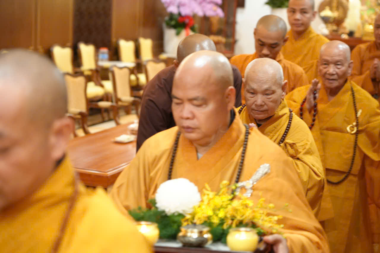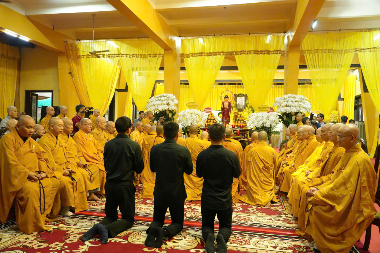 Hòa thượng Sám chủ cùng chư tôn đức Ban Nghi lễ đã thực hiện các pháp sự thỉnh Giác linh; sau đó cử hành lễ tiến linh và thành phục thọ tang, Tăng Ni môn đồ pháp quyến, Phật tử thọ tang trong niềm kính tiếc vô hạn.