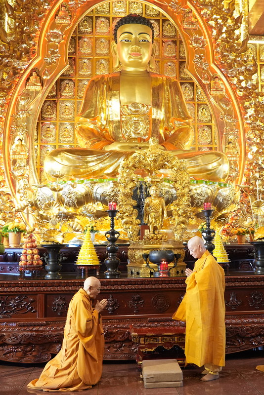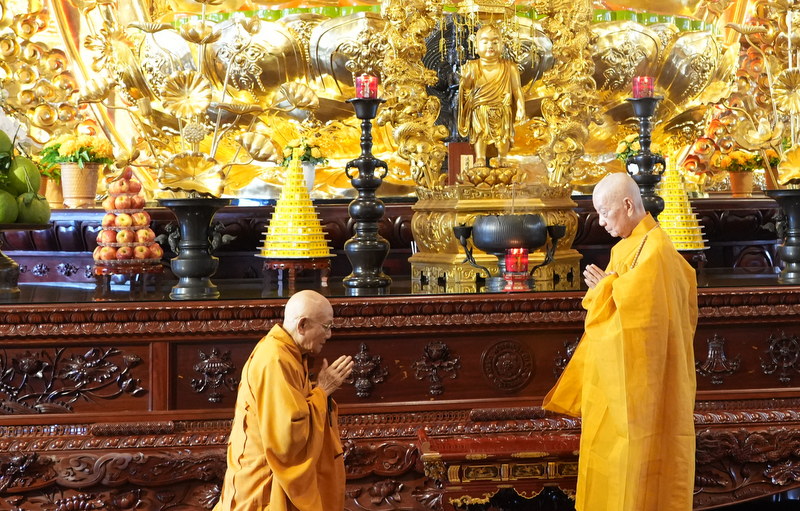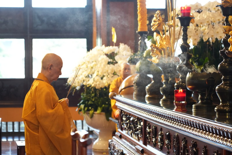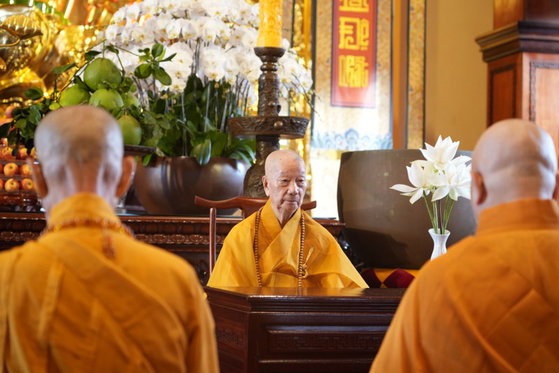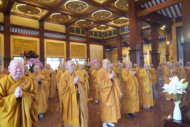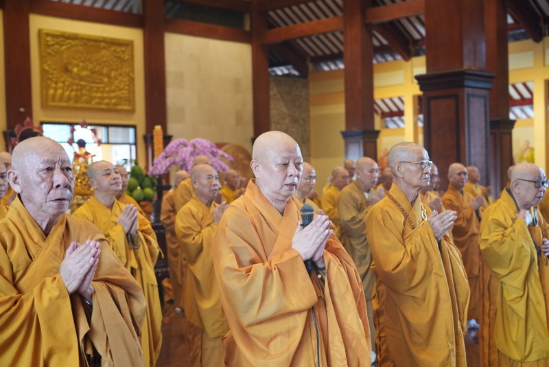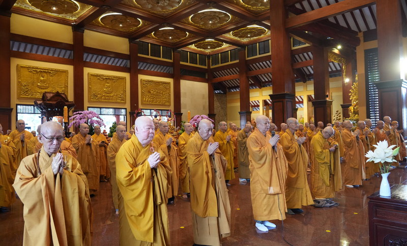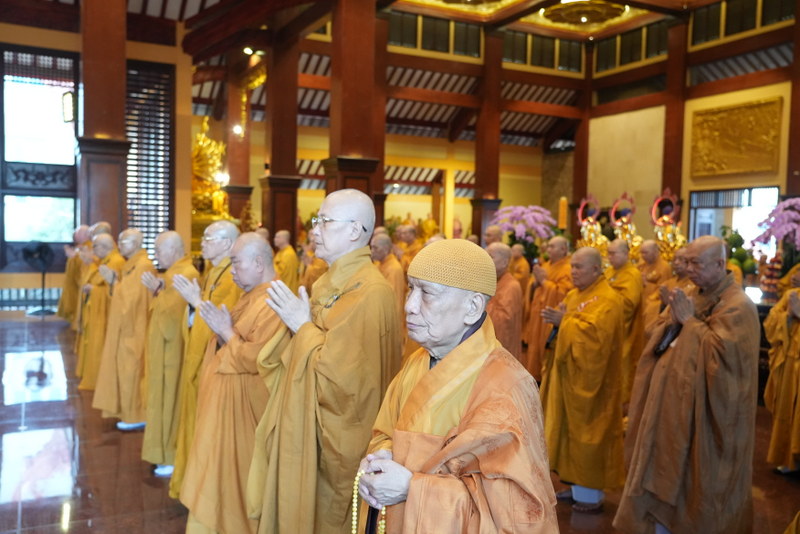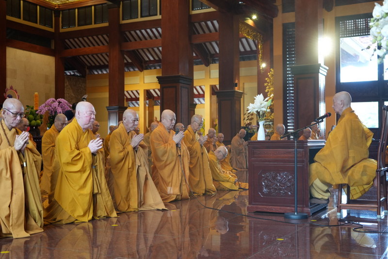 Sau nghi thức niêm hương bạch Phật tại chánh điện, nhị vị Hòa thượng đã tiến hành tác pháp Tự tứ đến toàn thể đại chúng trong tinh thần hòa hợp, thanh tịnh trong sự thúc liễm thân tâm, trau dồi giới đức suốt ba tháng hạ của Tăng đoàn.